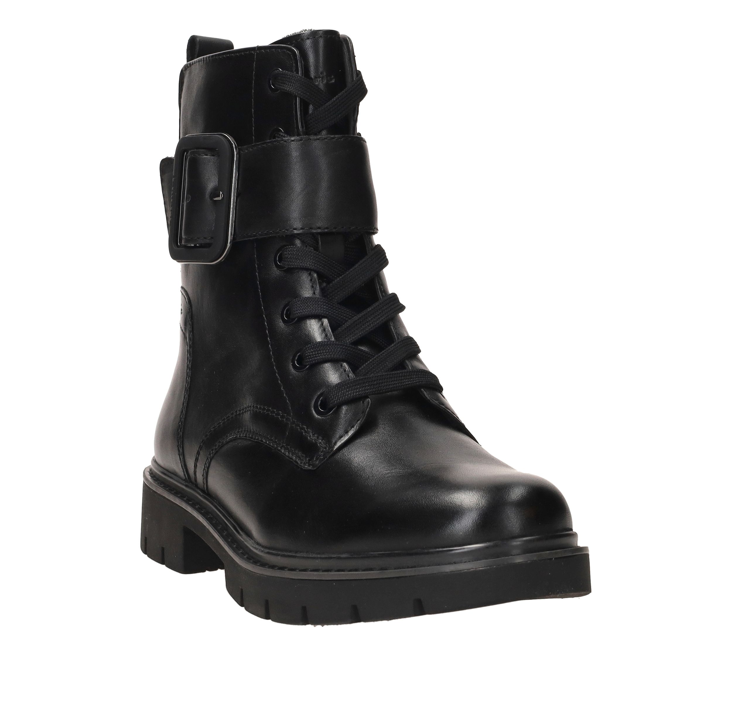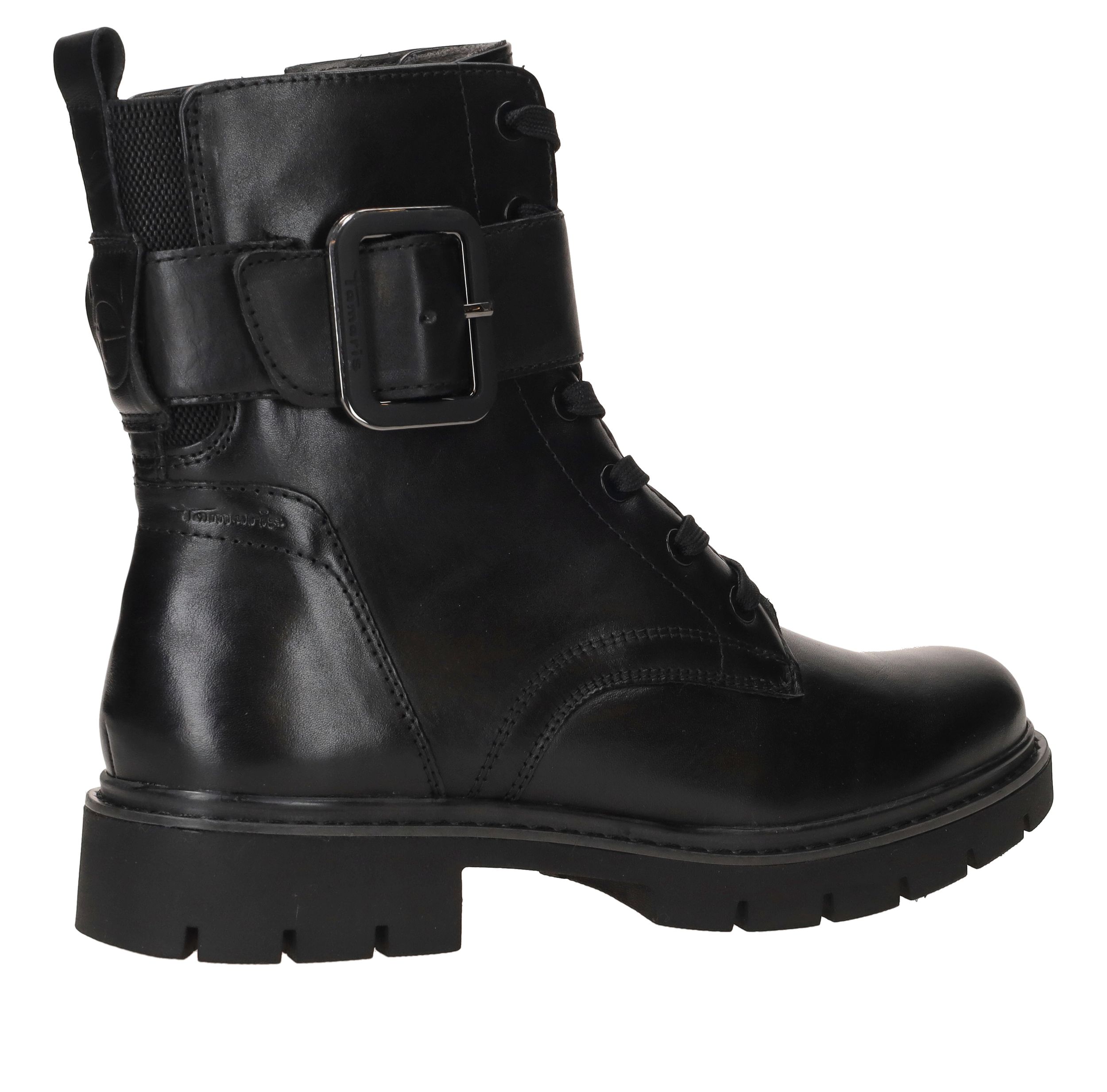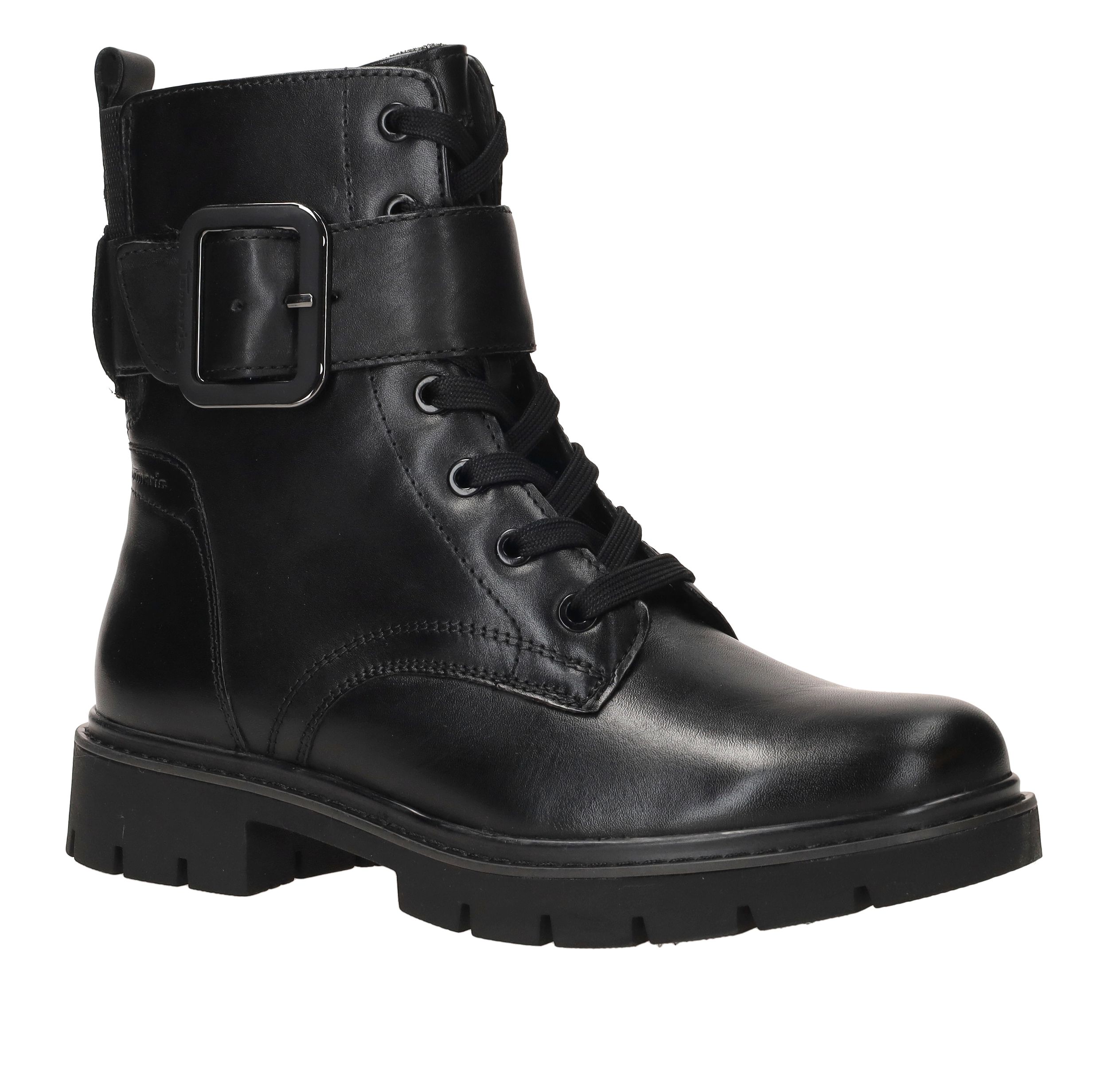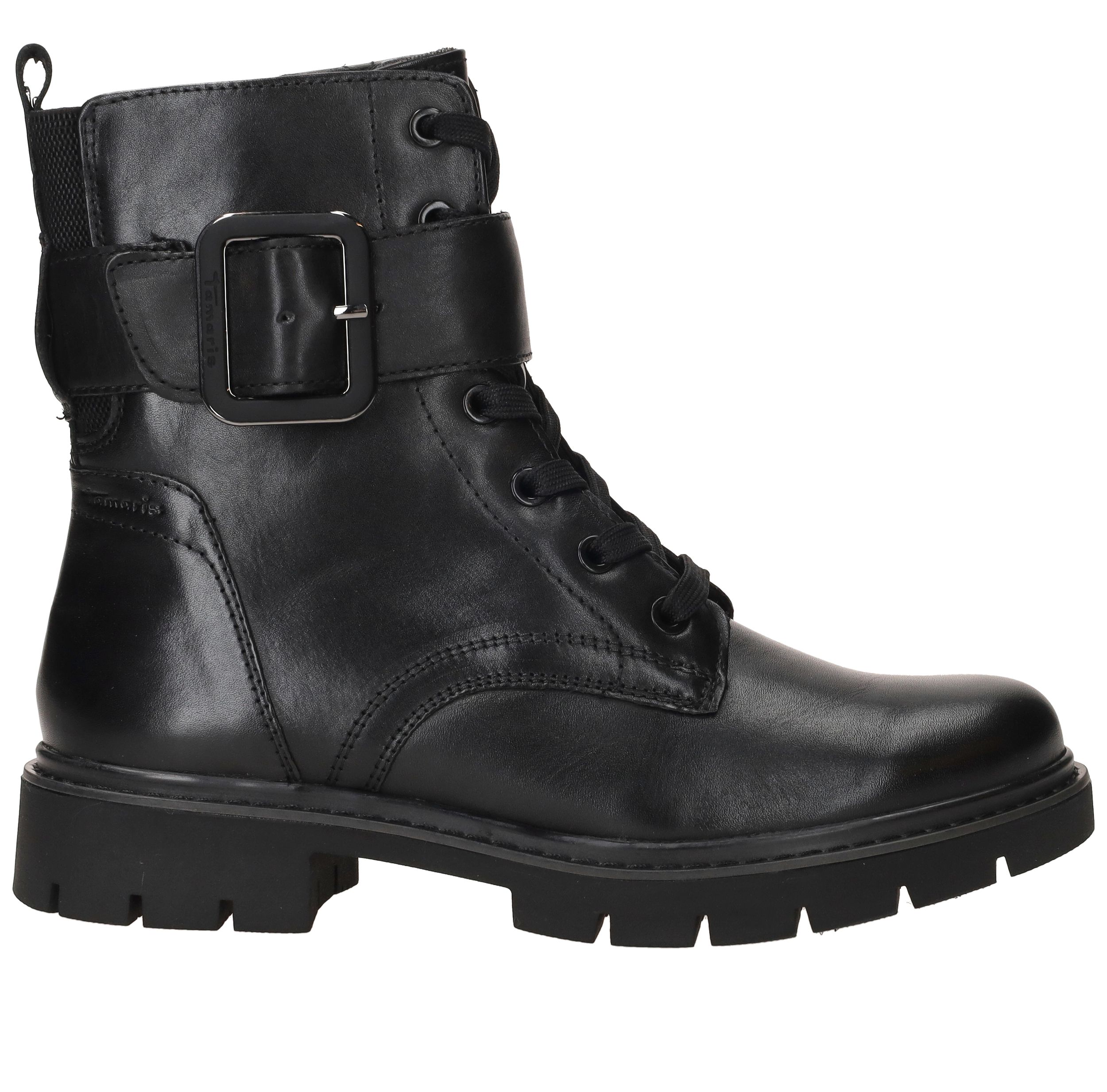Stoere zwarte Tamaris veterschoen met grote gesp. De veterboot loopt heel comfortabel door het voorgevormde voetbed.