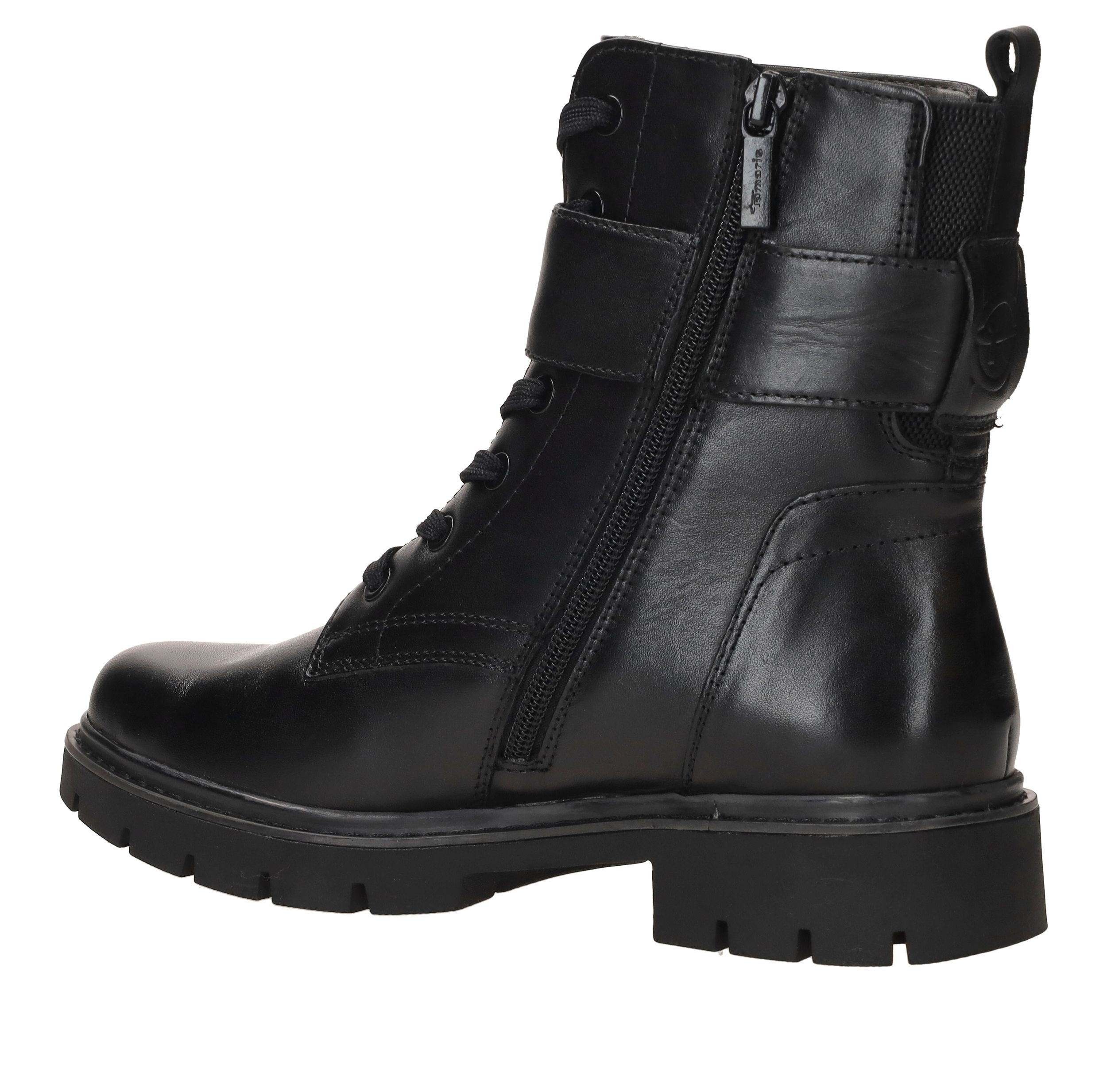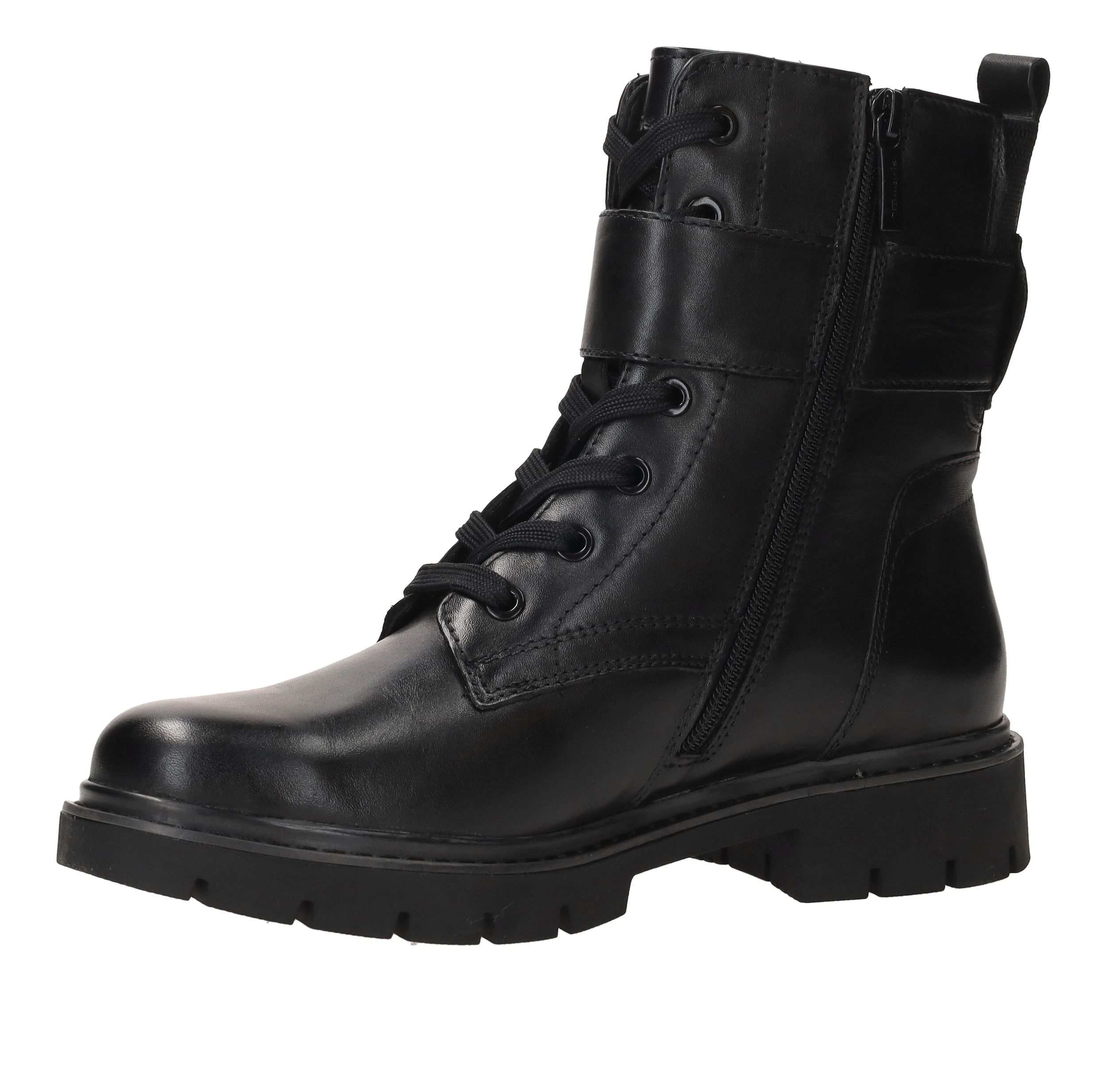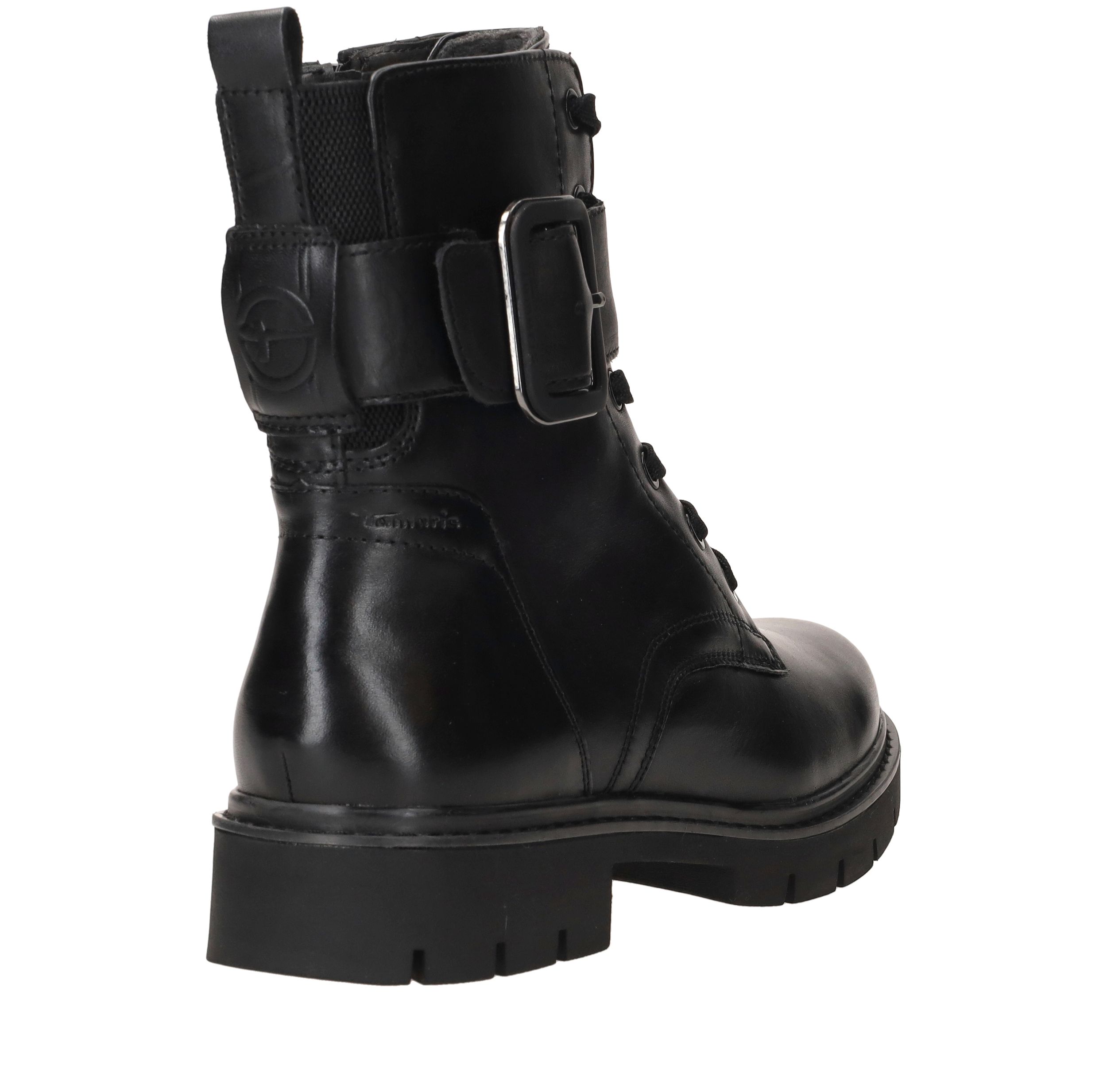 Stoere zwarte Tamaris veterschoen met grote gesp. De veterboot loopt heel comfortabel door het voorgevormde voetbed.