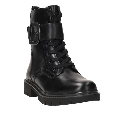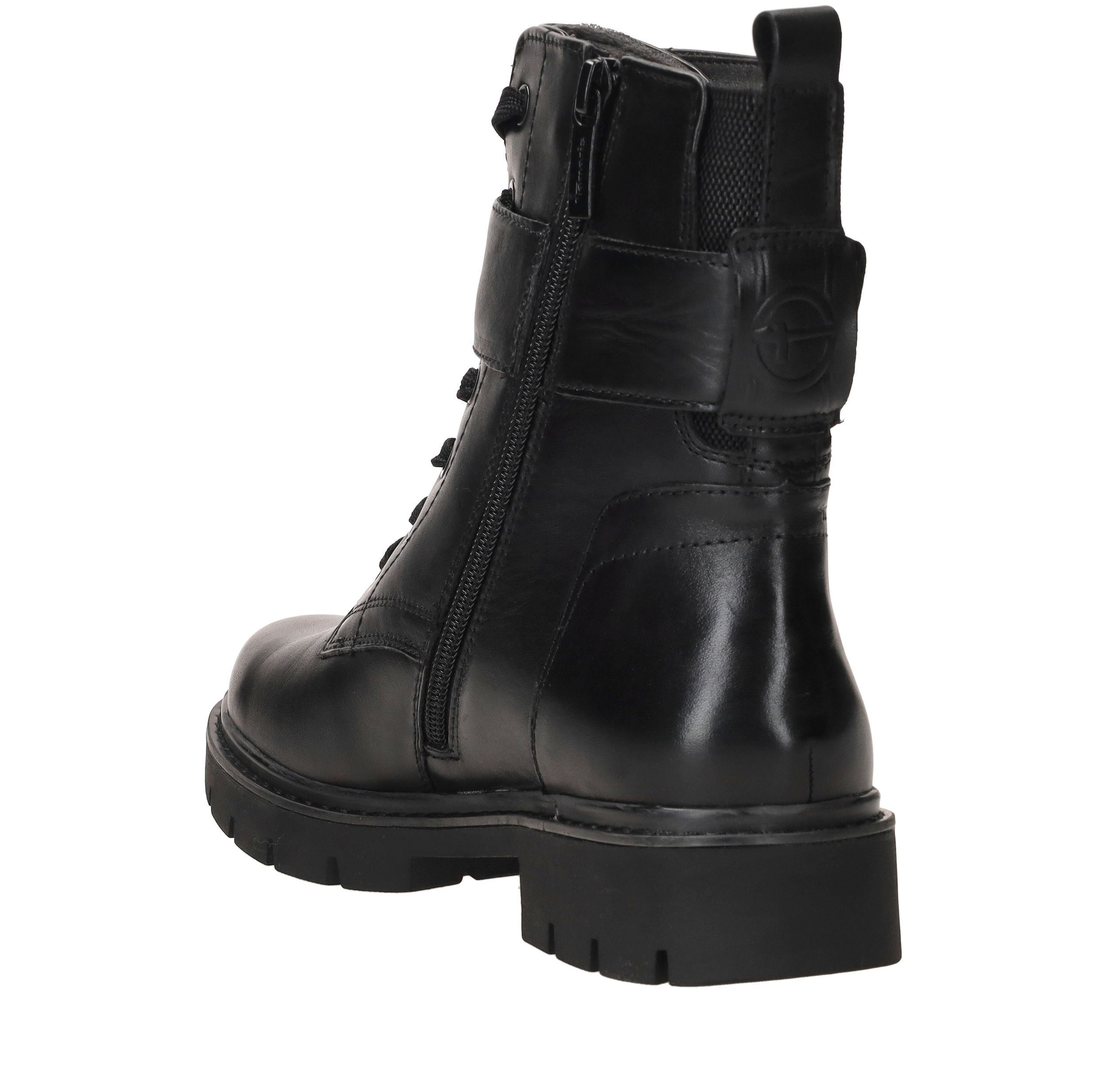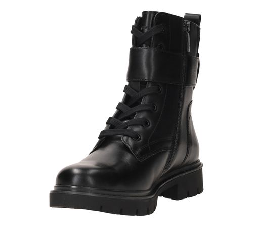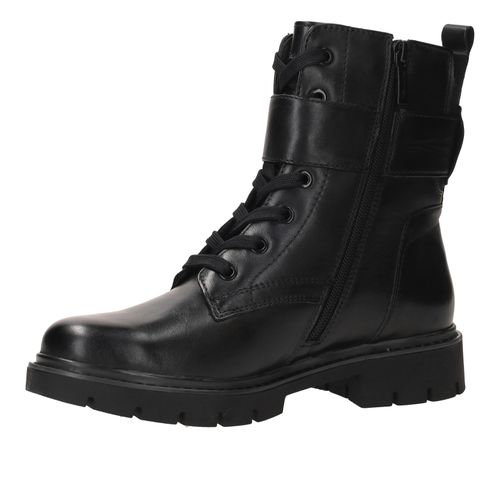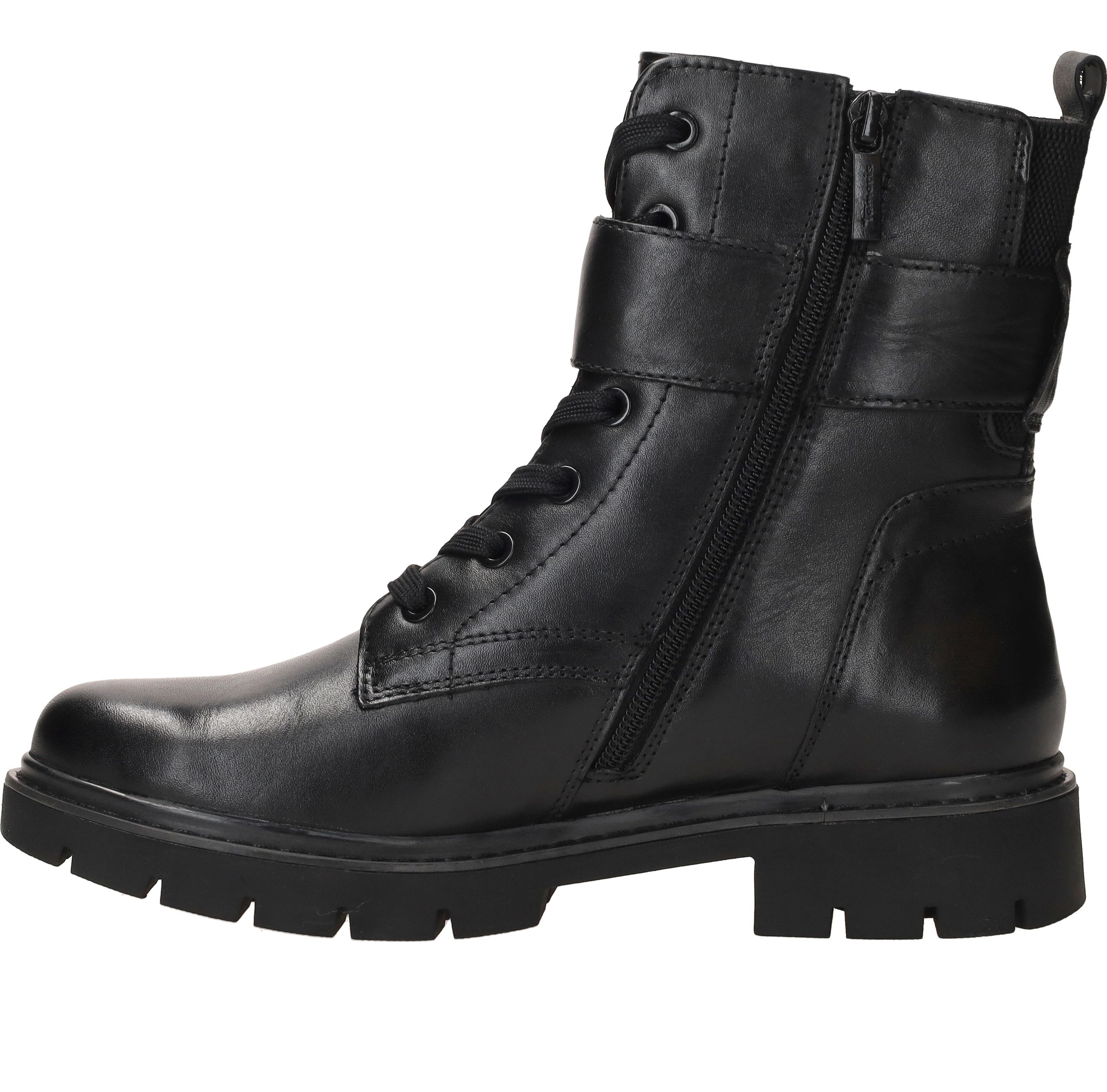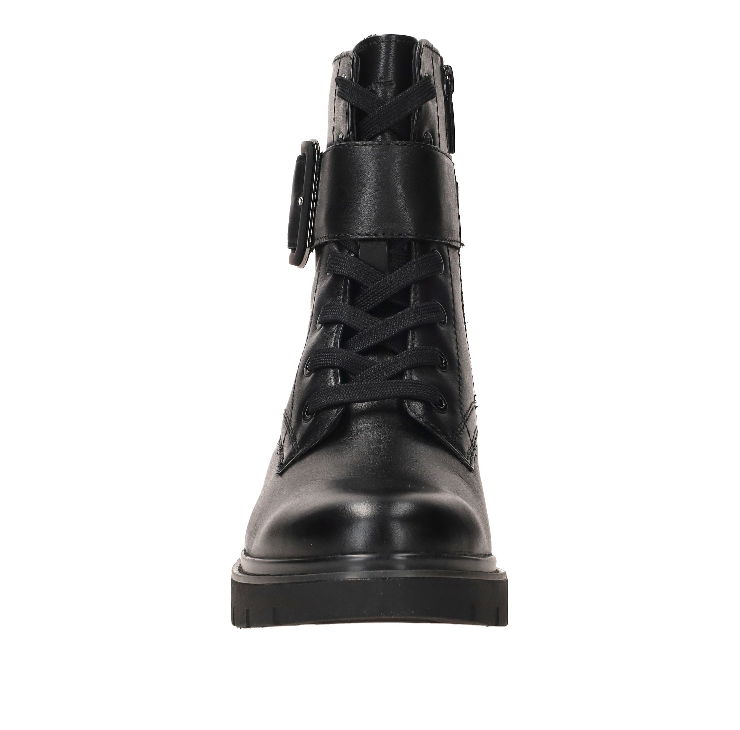 Stoere zwarte Tamaris veterschoen met grote gesp. De veterboot loopt heel comfortabel door het voorgevormde voetbed.