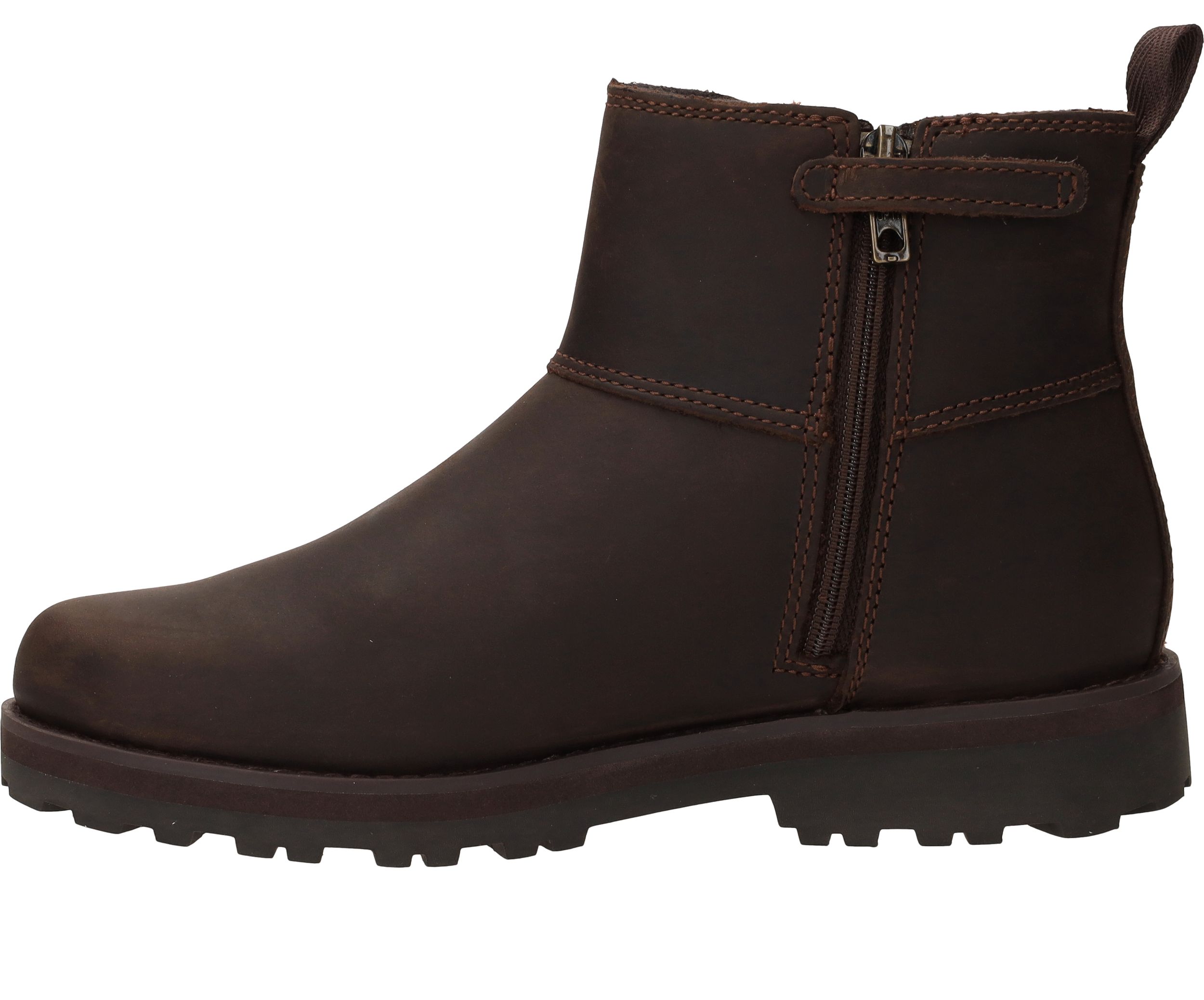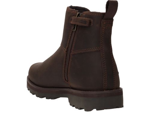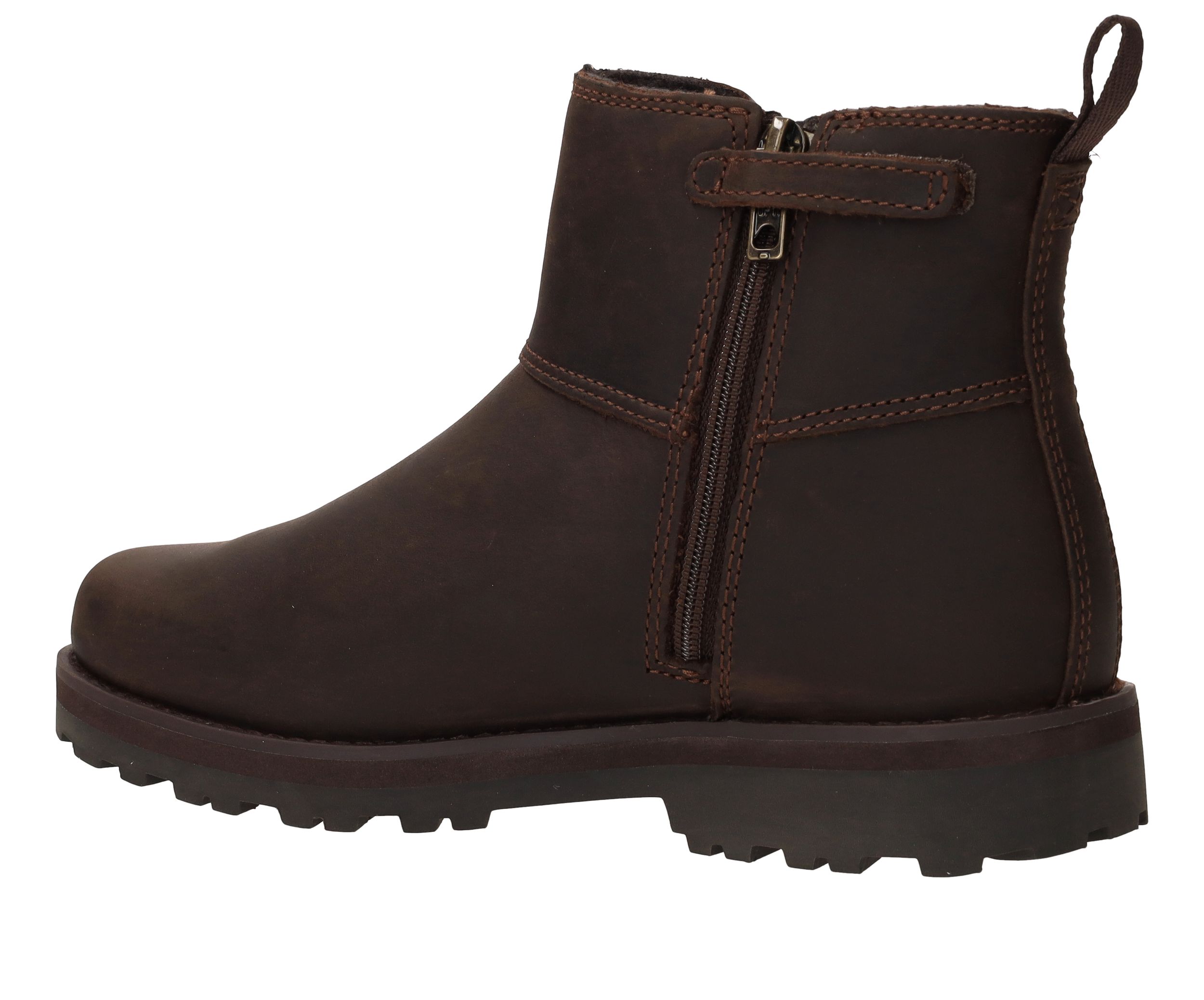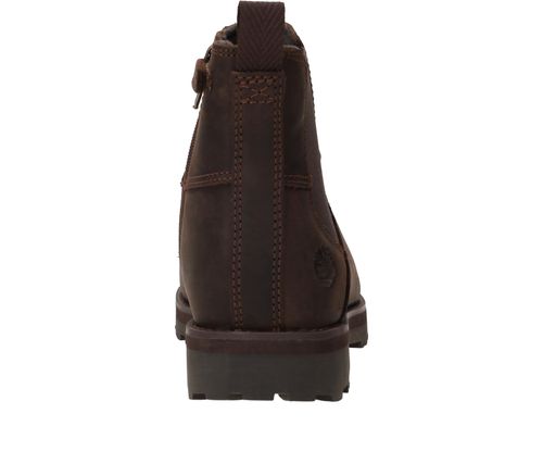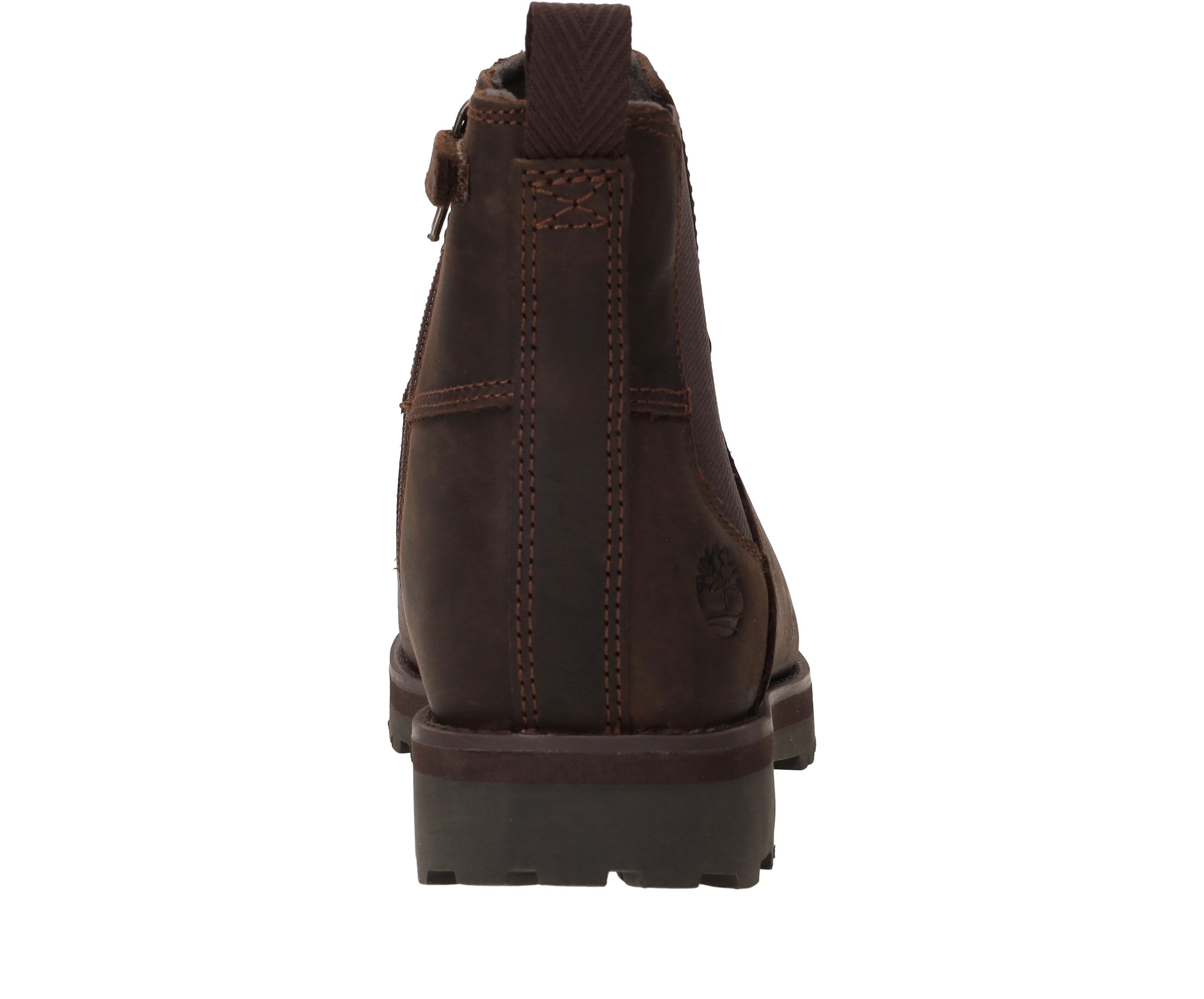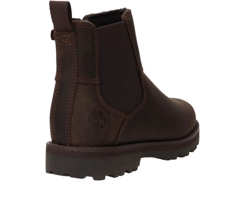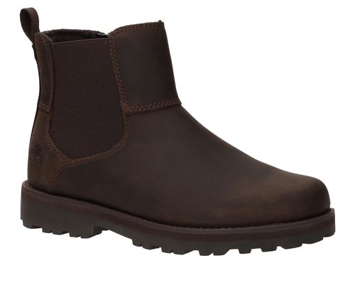 Stoere bruine Timberland Courma Kid Mid chelseaboot voor jongens. Deze stevige jongensschoen is gemaakt van leer.