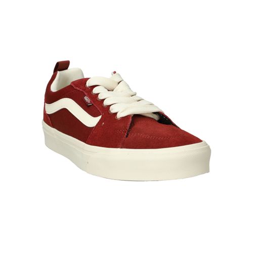 De sneakers van Vans combineren moeiteloos een stoere uitstraling met comfort. Deze rode herensneakers zijn gemaakt van een mix van suède en textiel, waardoor ze zowel stevig als soepel zijn. De herkenbare skatelook maakt ze perfect voor dagelijks gebruik én een sportieve stijl.