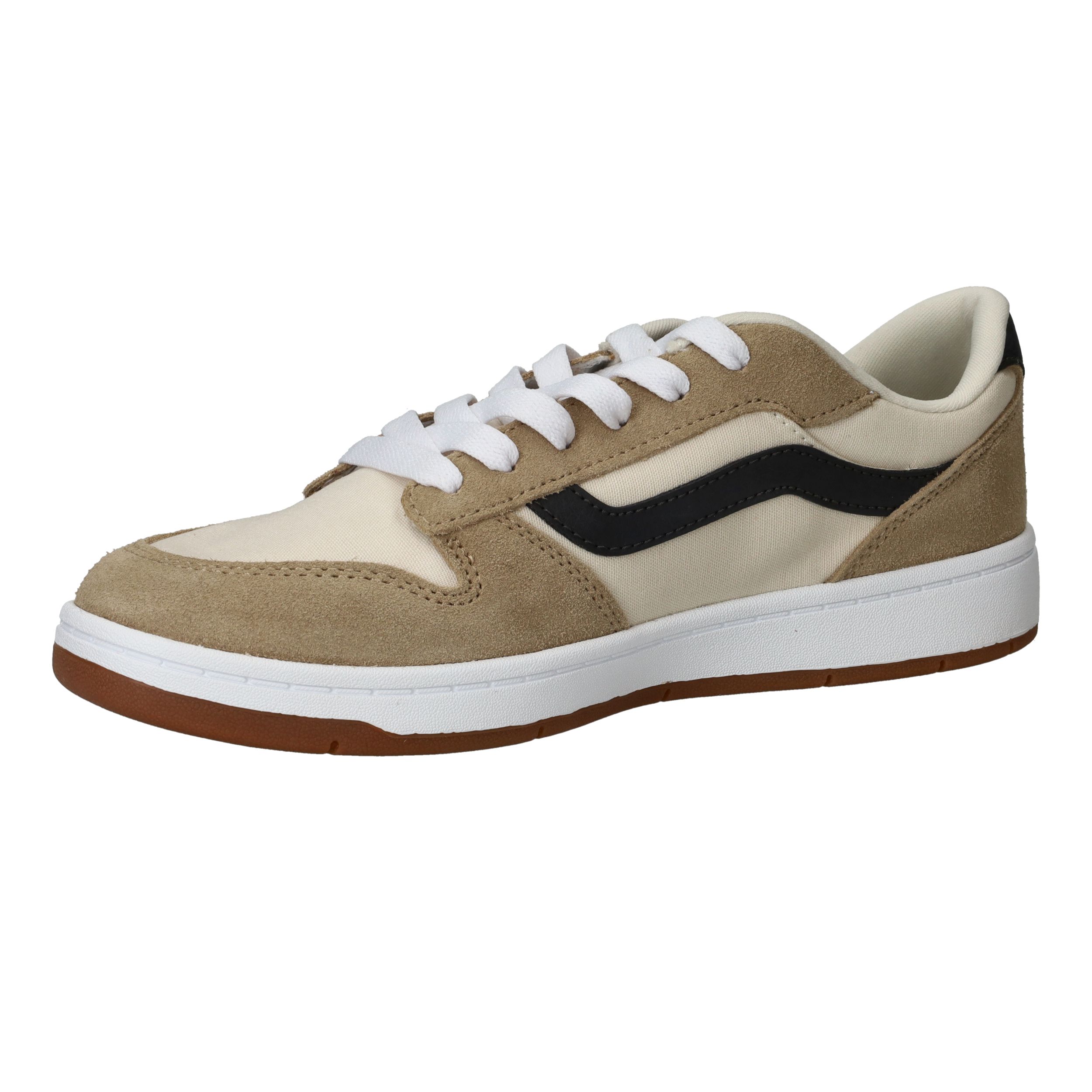Deze Vans Rylandsneakers voor heren zijn de perfecte mix van retro stijl en modern comfort. Het bovenwerk van suède en textiel zorgt voor een robuuste uitstraling en een aangename pasvorm. De zachte voering van textiel houdt je voeten de hele dag fris, of je nu op pad bent of relaxt.