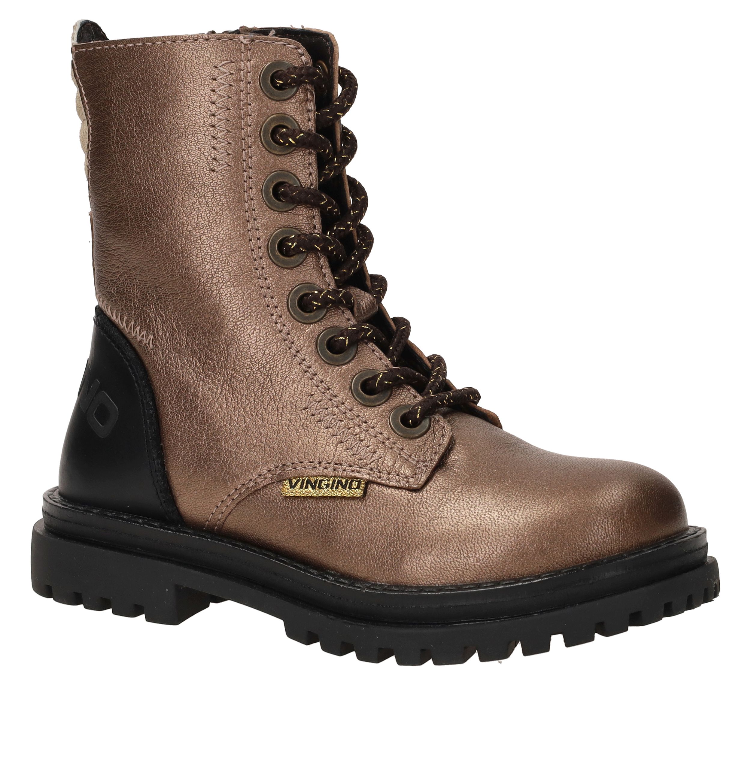 Stoere Vingino Shirley veterschoen voor meiden in een prachtige metallic bronzen kleur! De schoen is helemaal gemaakt van leer.
