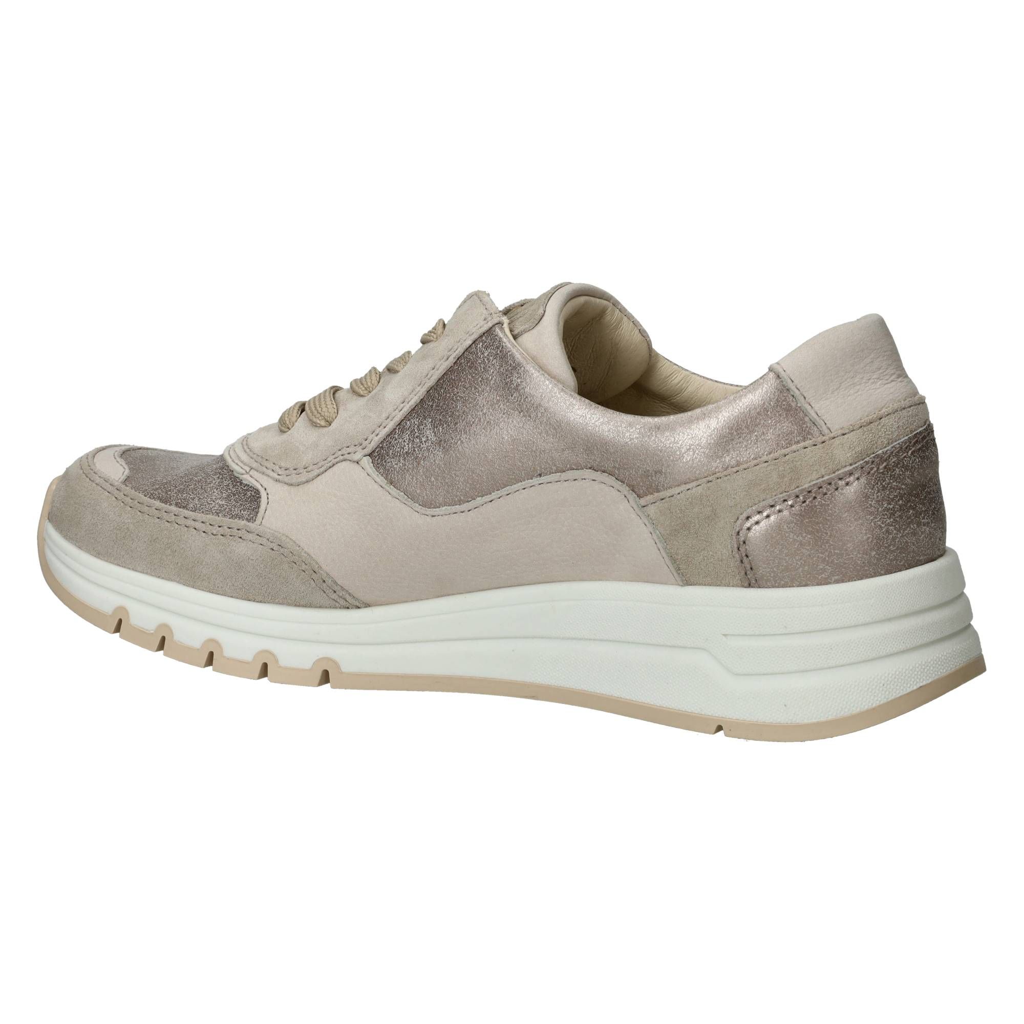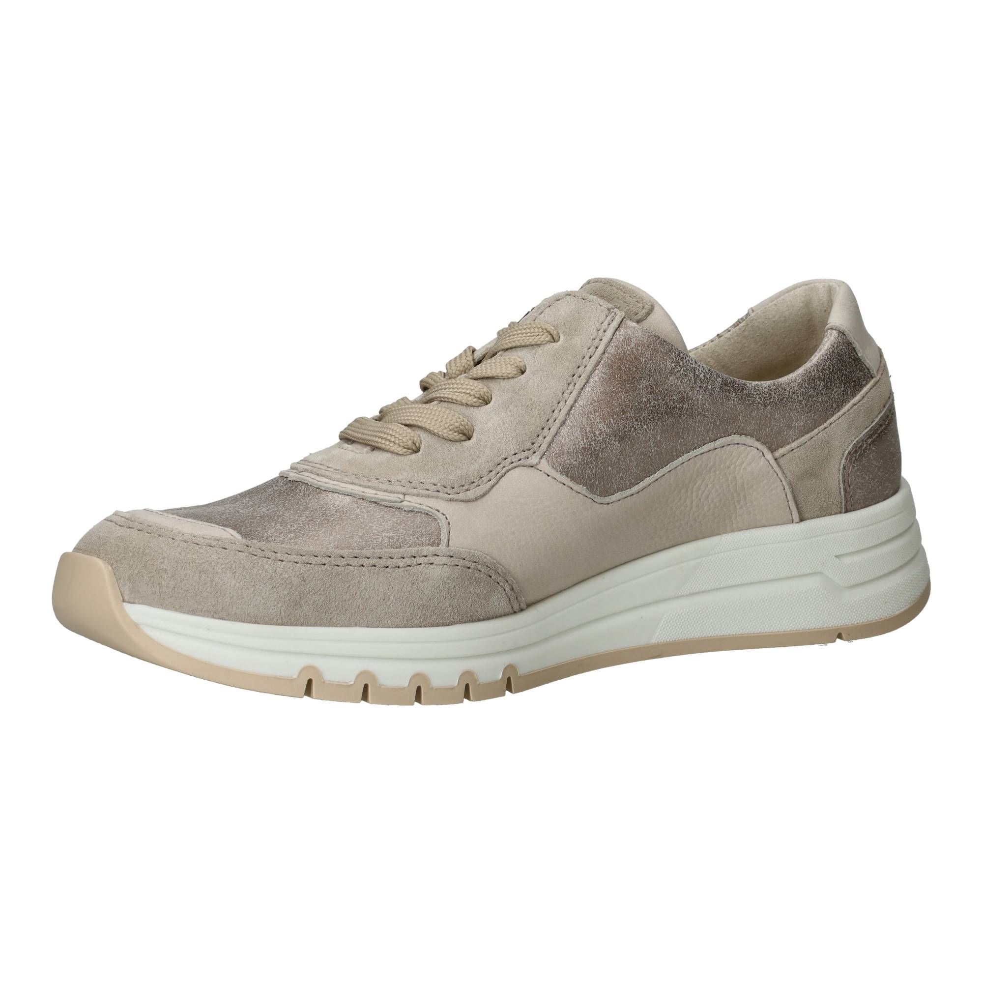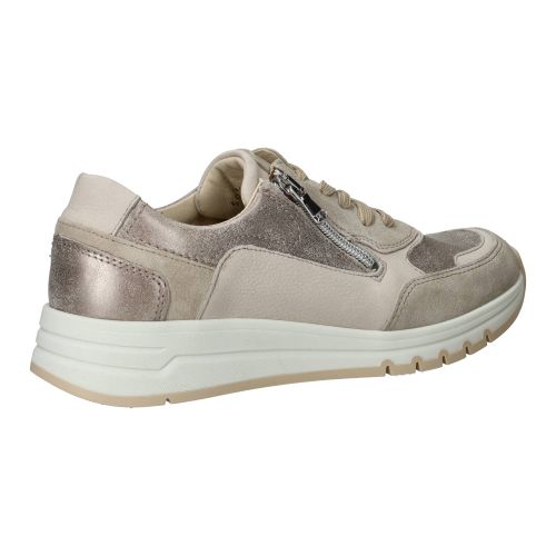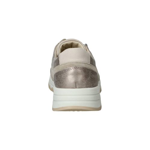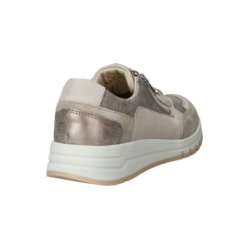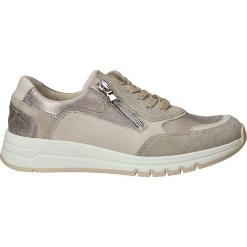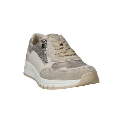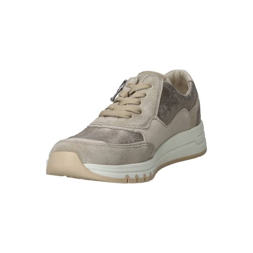 De dames comfort sneakers van Waldlaufer, model April, zijn de perfecte keuze als je op zoek bent naar een schoen die zowel stijlvol als comfortabel is. Deze beige sneakers, verrijkt met subtiele metallic details en een vleugje suède, passen moeiteloos bij verschillende outfits en gelegenheden. Ze voelen heerlijk aan je voeten en bieden een fijne demping bij elke stap, wat zorgt voor een prettige drukverdeling. Dit maakt ze ideaal voor lange dagen waarop je veel loopt of staat.- De combinatie van veters en een rits zorgt voor een makkelijke instap en een pasvorm die je nauwkeurig aanpast aan jouw voet.