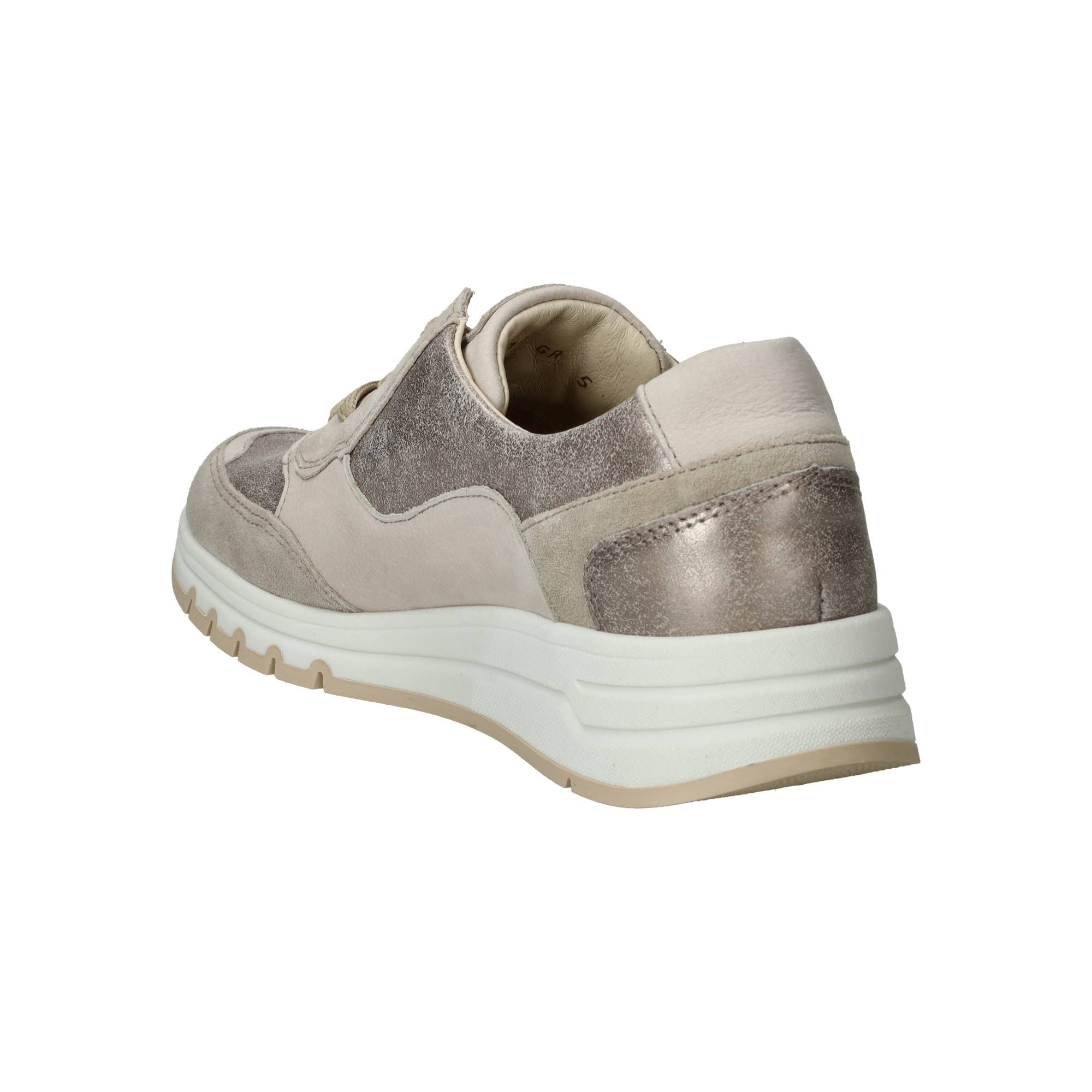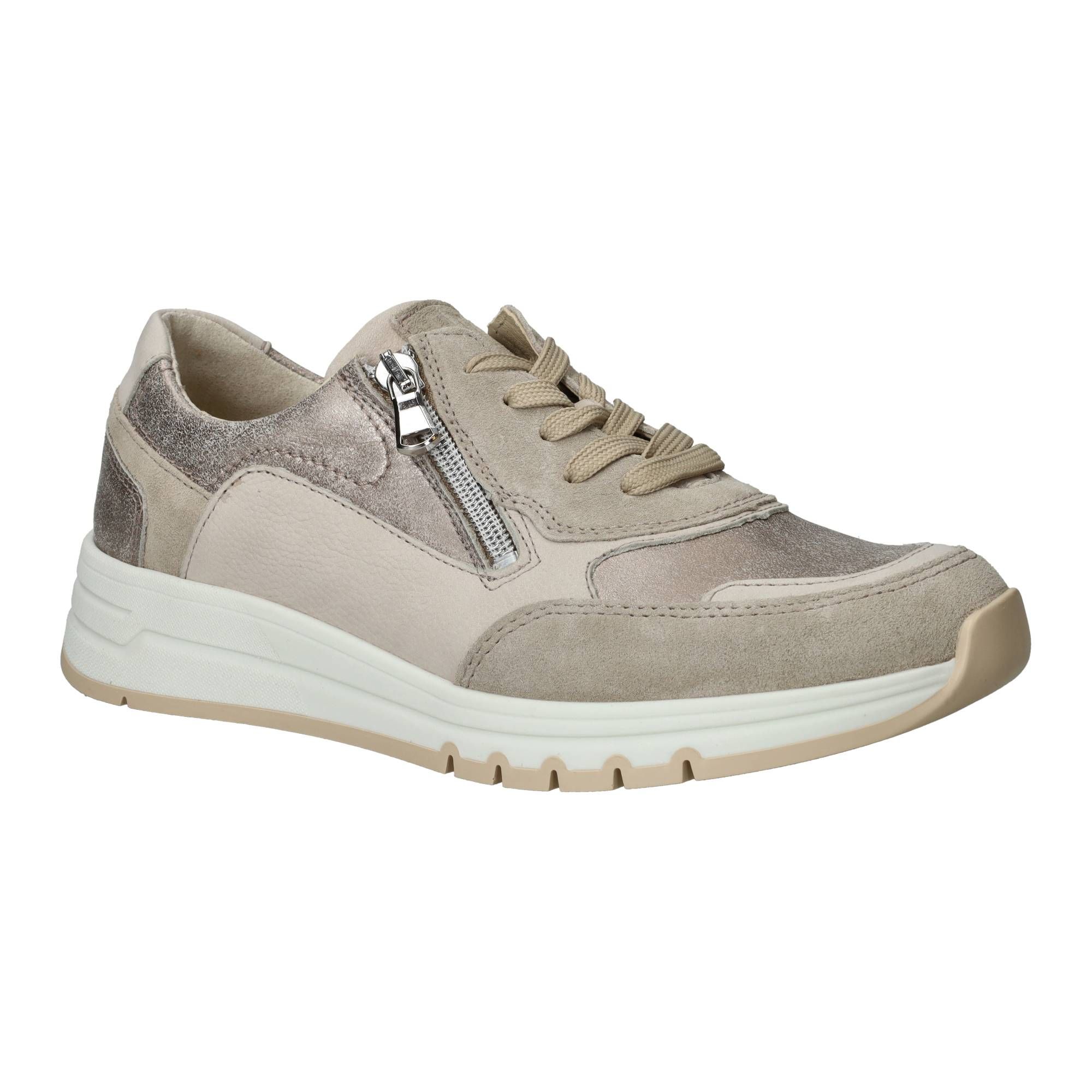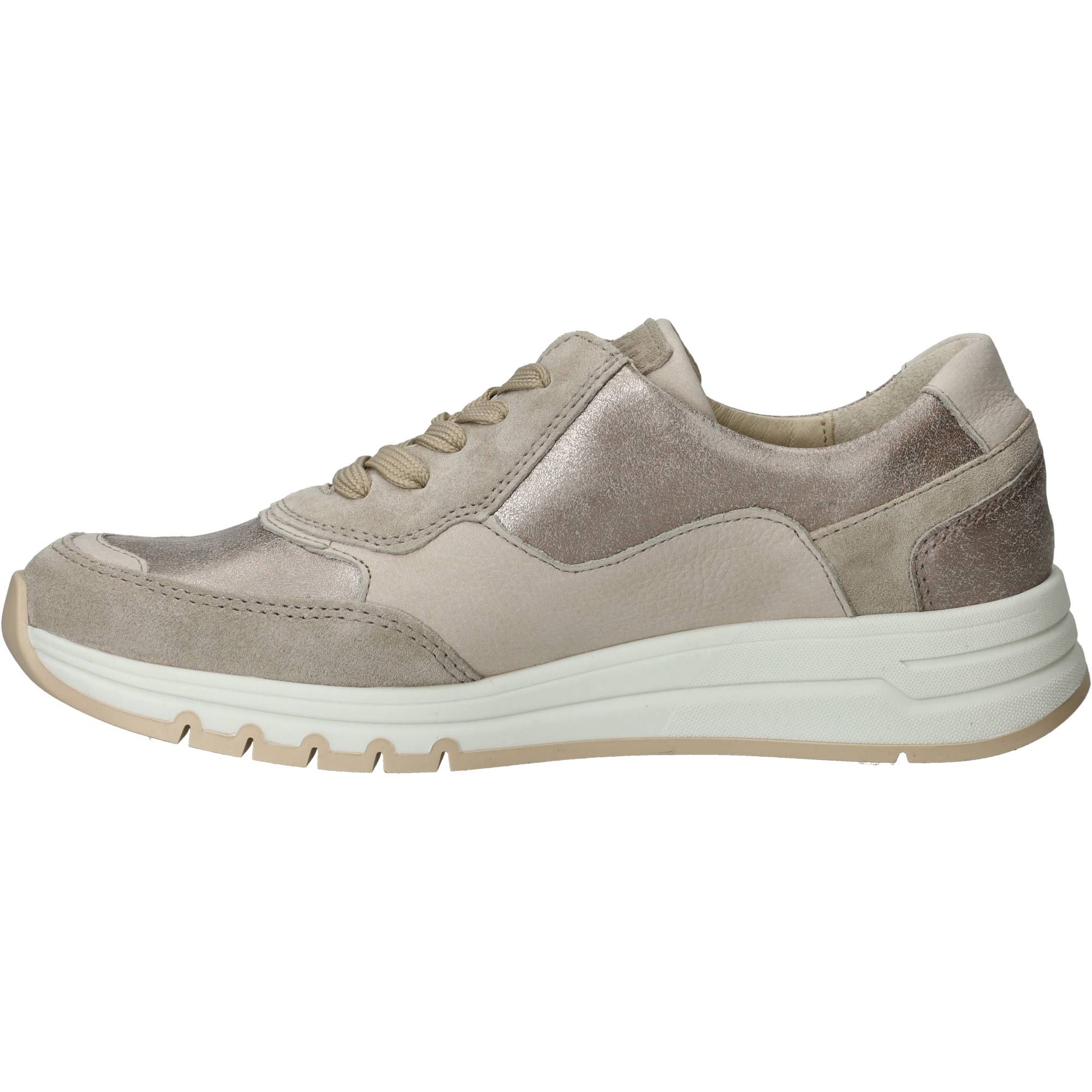 De dames comfort sneakers van Waldlaufer, model April, zijn de perfecte keuze als je op zoek bent naar een schoen die zowel stijlvol als comfortabel is. Deze beige sneakers, verrijkt met subtiele metallic details en een vleugje suède, passen moeiteloos bij verschillende outfits en gelegenheden. Ze voelen heerlijk aan je voeten en bieden een fijne demping bij elke stap, wat zorgt voor een prettige drukverdeling. Dit maakt ze ideaal voor lange dagen waarop je veel loopt of staat.- De combinatie van veters en een rits zorgt voor een makkelijke instap en een pasvorm die je nauwkeurig aanpast aan jouw voet.