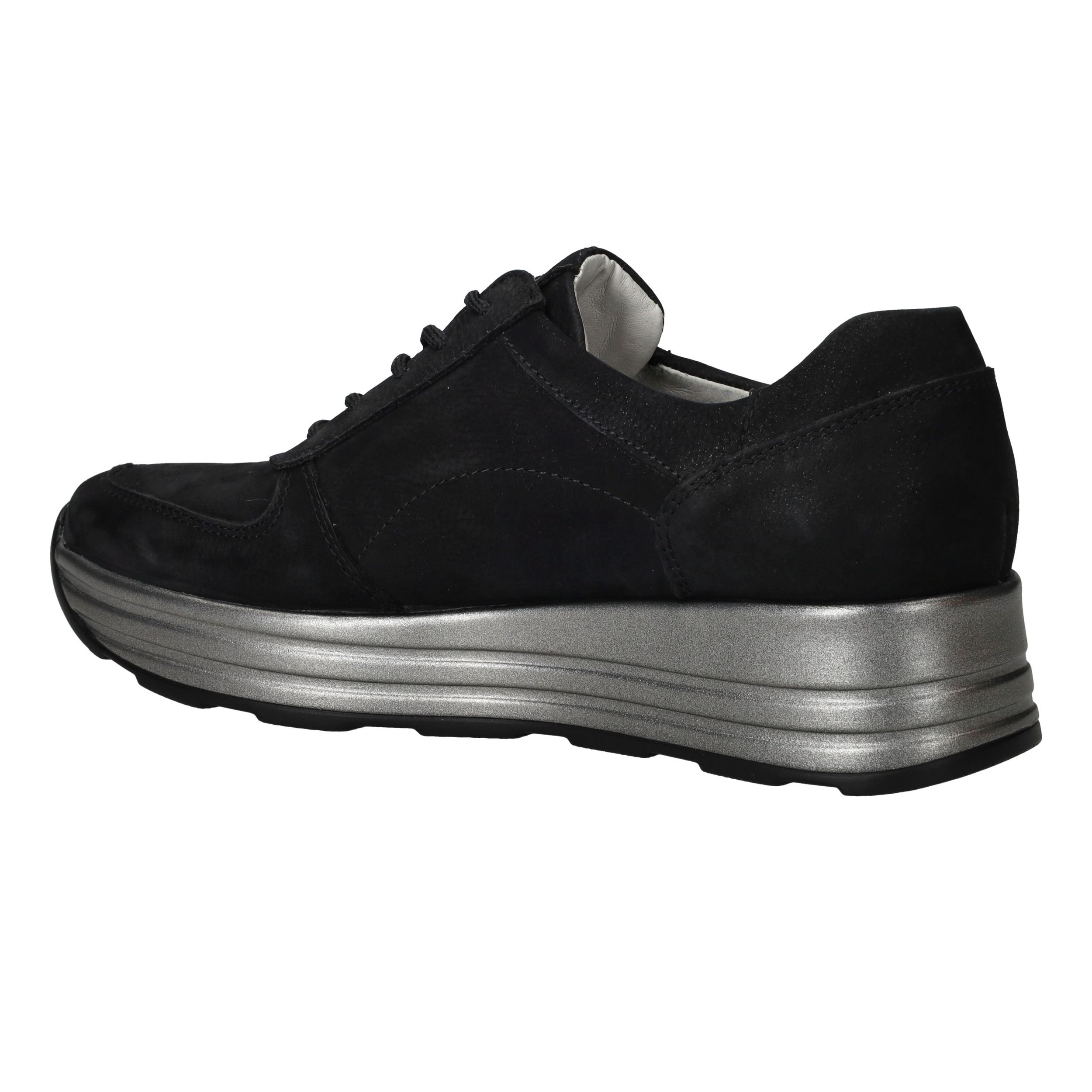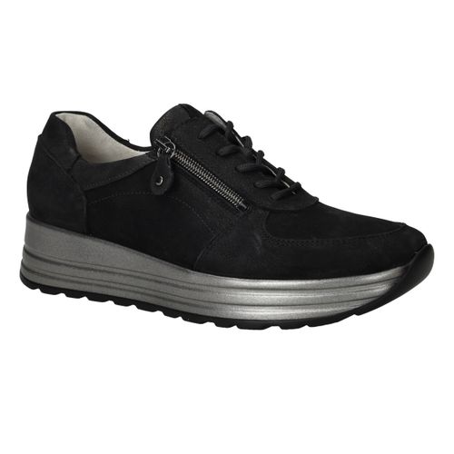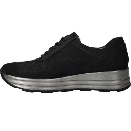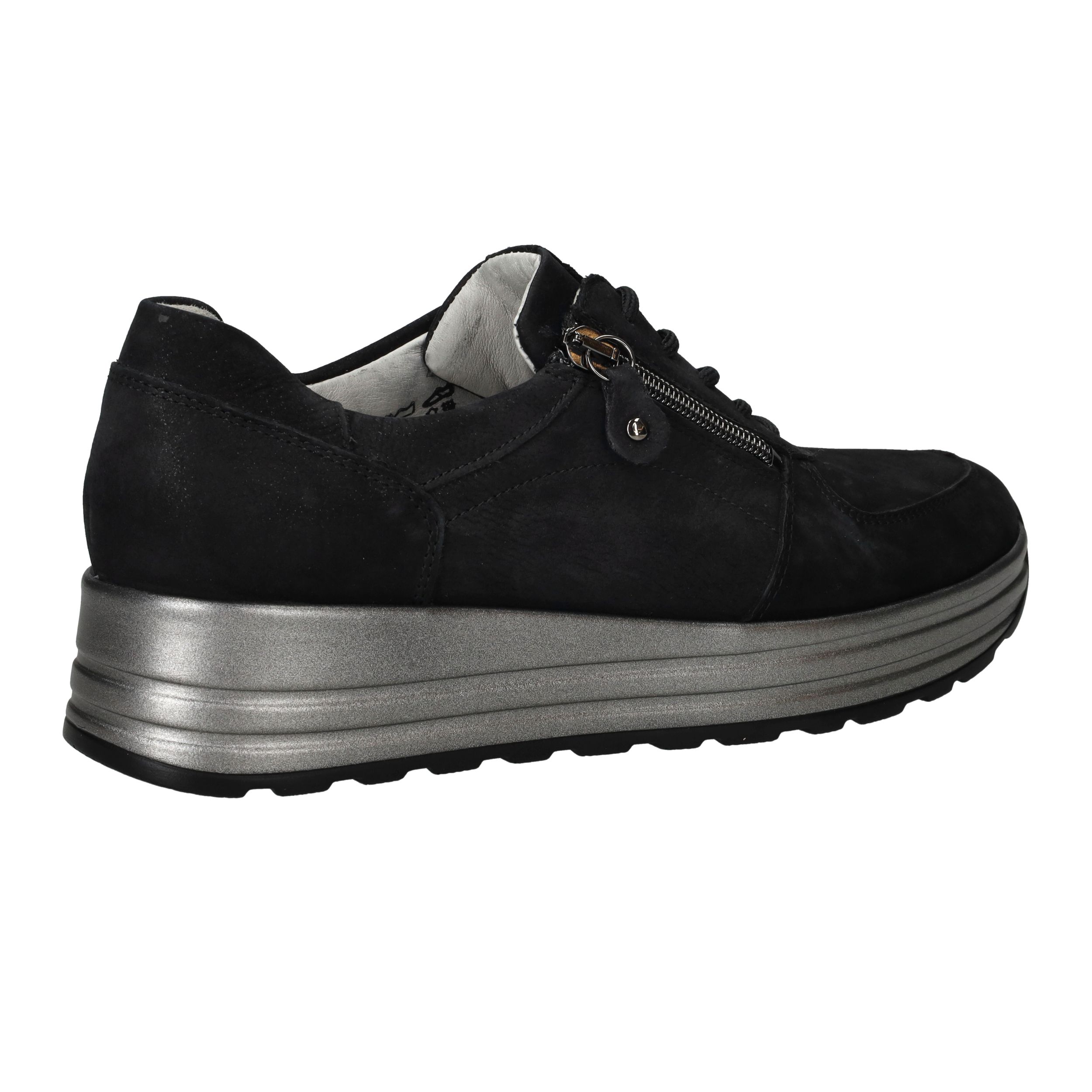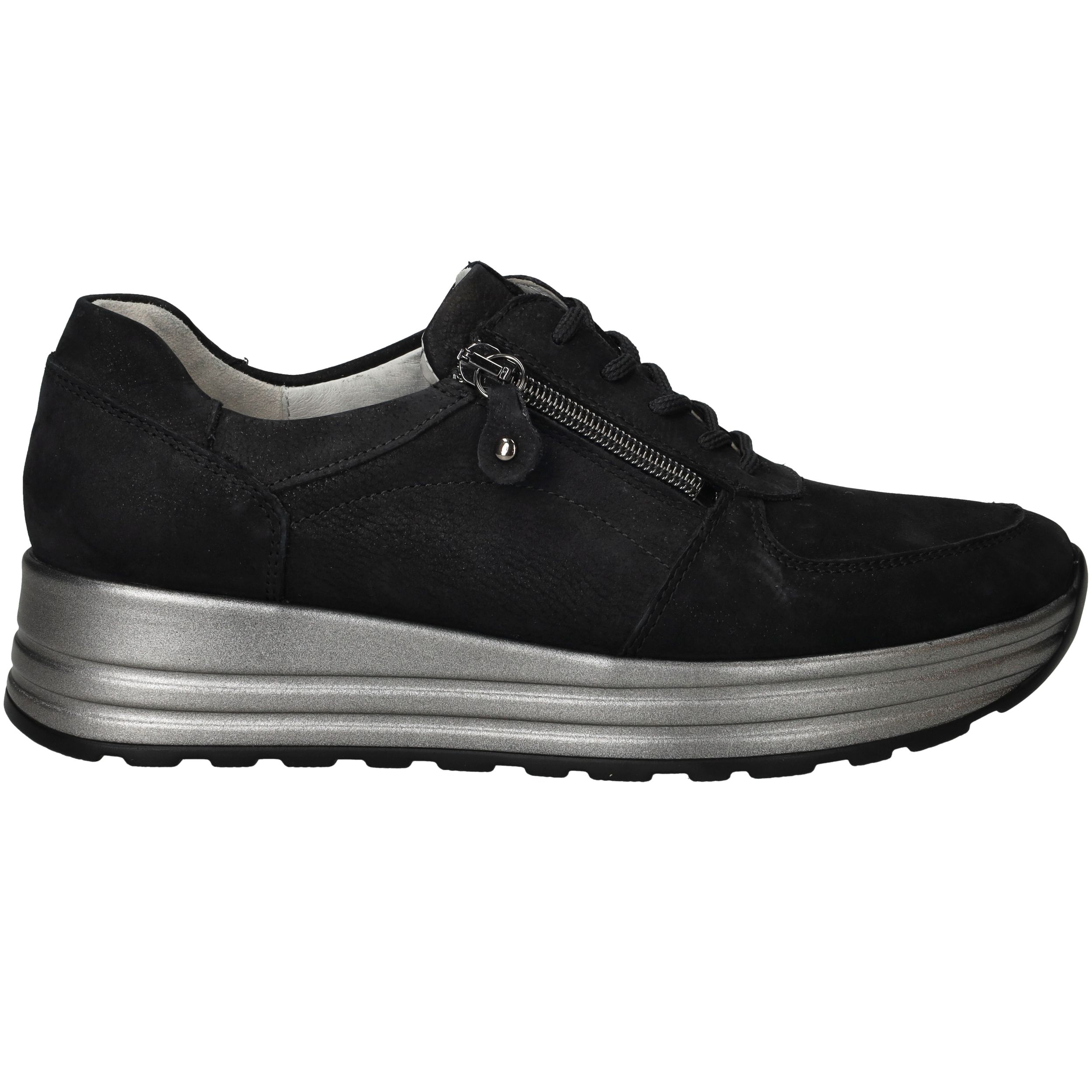 Deze moderne dames sneakers van Waldläufer bieden een perfecte mix van stijl en comfort. De Lana is uitgevoerd in zwart leer en heeft een opvallende metallic platformzool die zorgt voor een sportieve én vrouwelijke look. Dankzij de ritssluiting en comfortabele voetwijdte H is deze sneaker praktisch én prettig in het dragen.