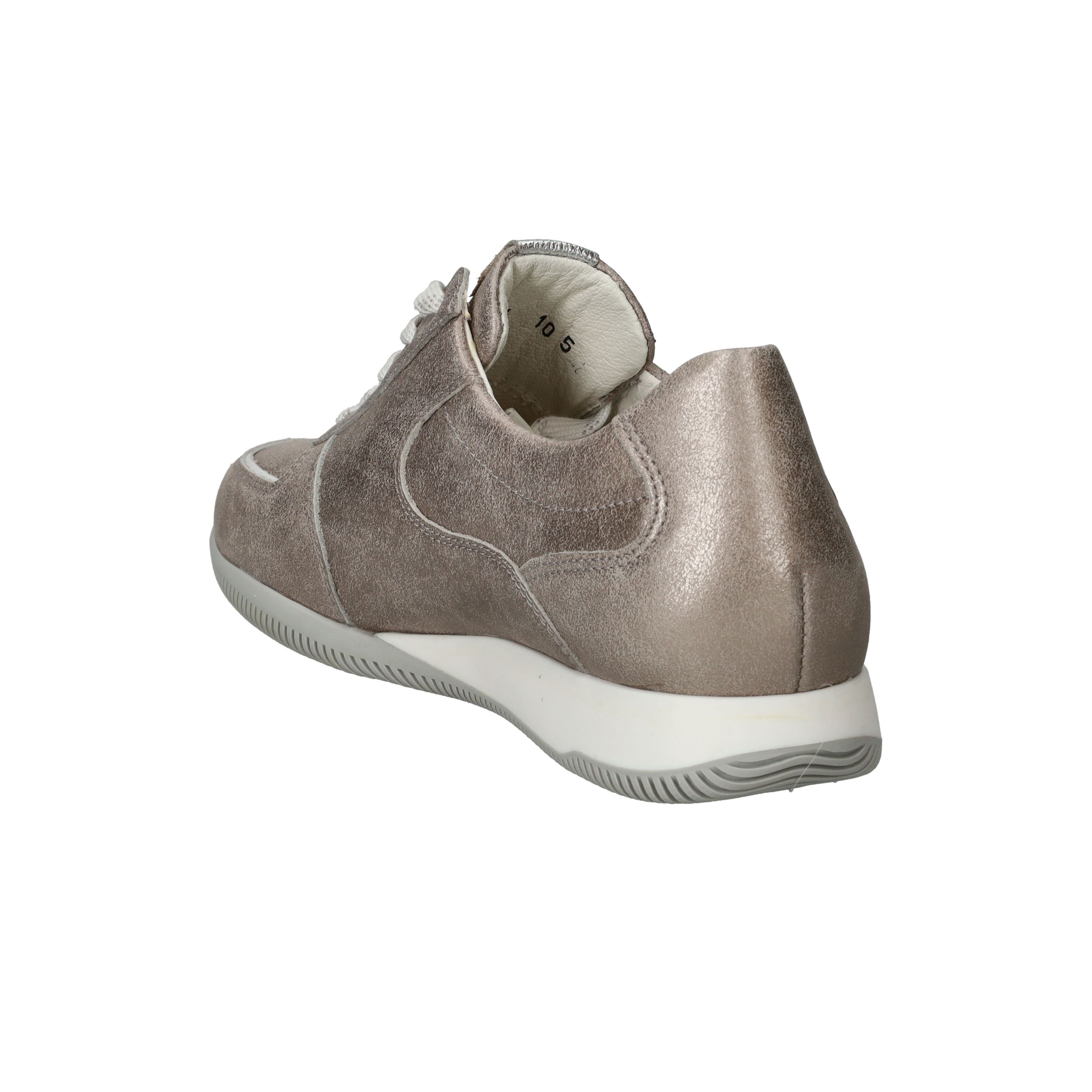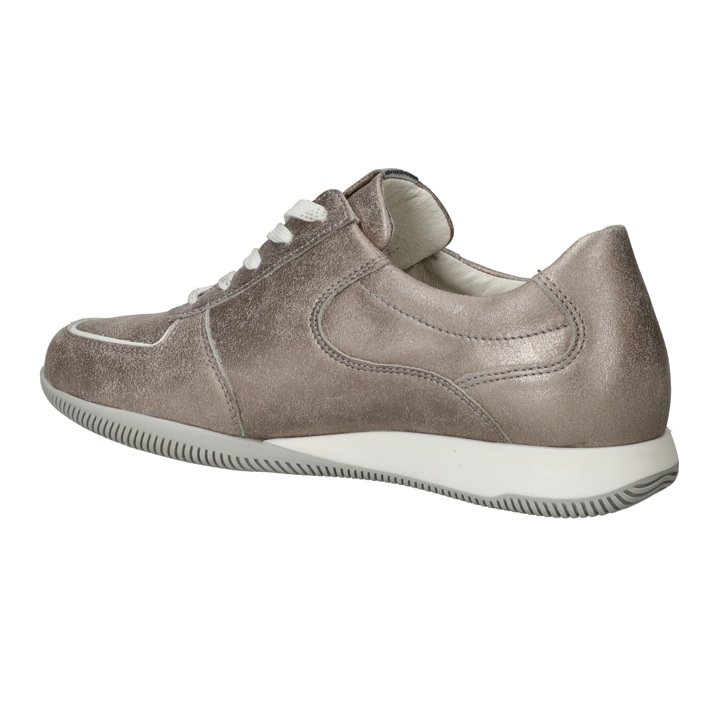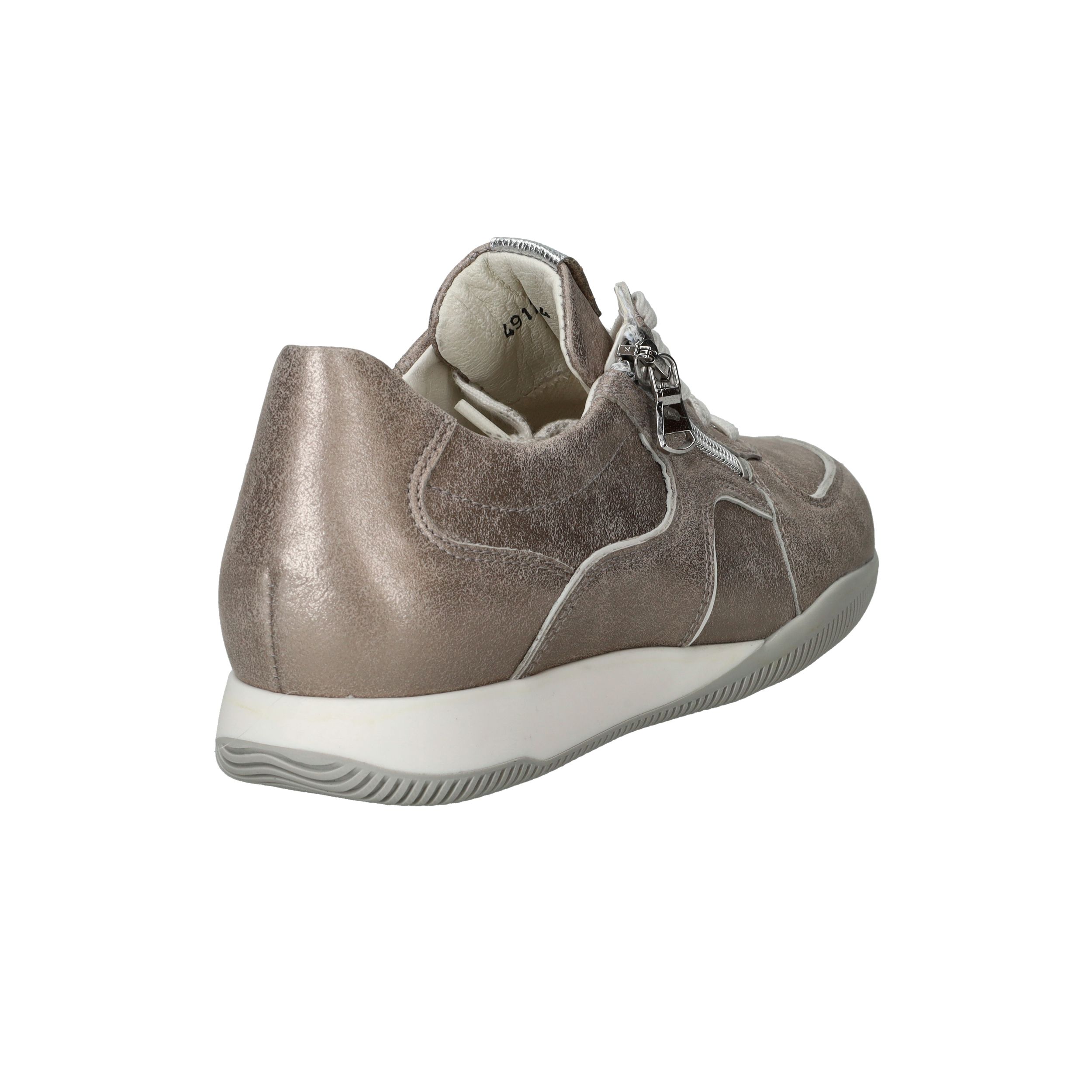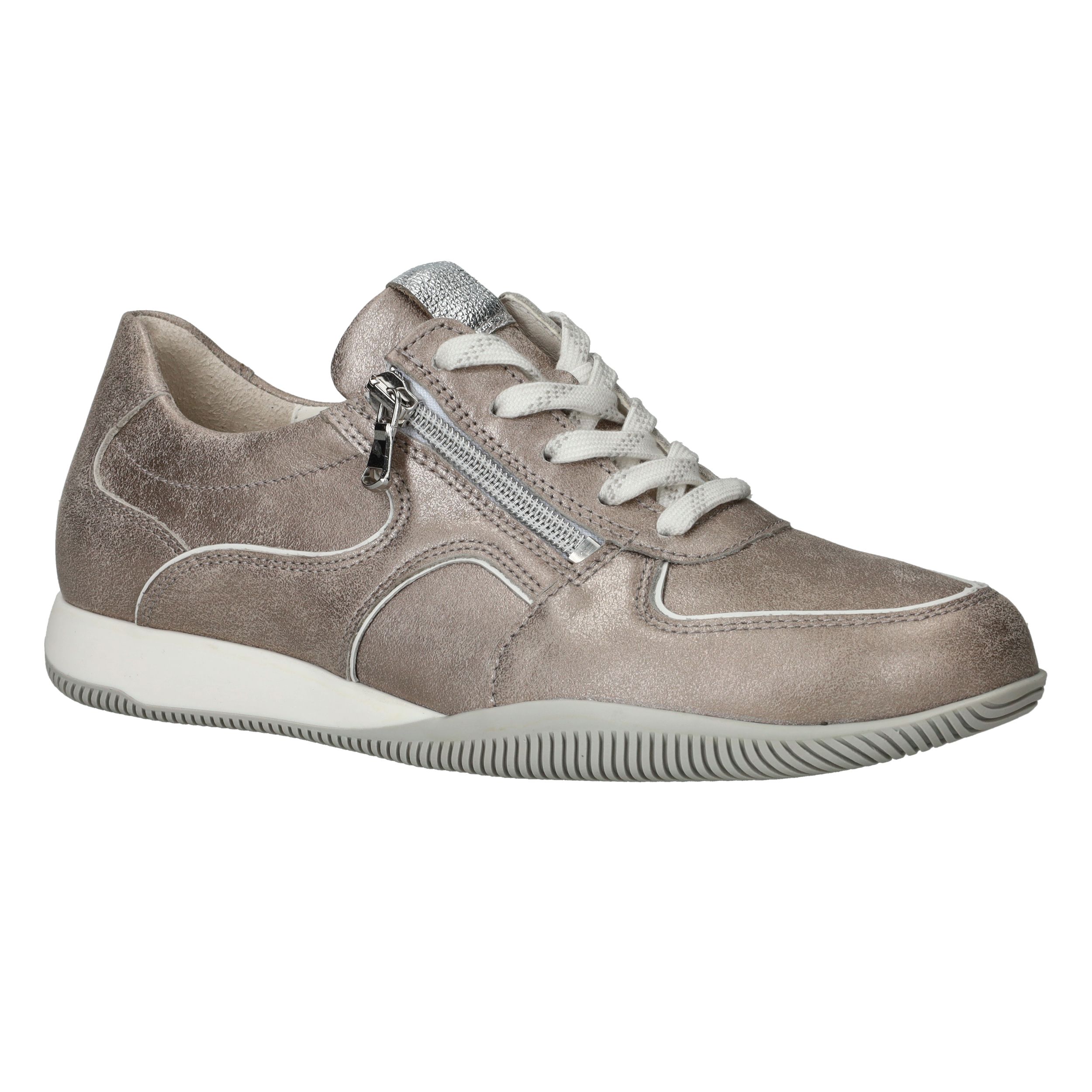 Deze stijlvolle dames sneakers van Waldläufer zijn uitgevoerd in glanzend zilver metallic leer voor een moderne, frisse look. De combinatie van sportiviteit en luxe maakt deze sneaker perfect voor dagelijks gebruik. Dankzij de comfortabele voetwijdte H biedt deze schoen extra ruimte zonder in te leveren op stijl of ondersteuning.
