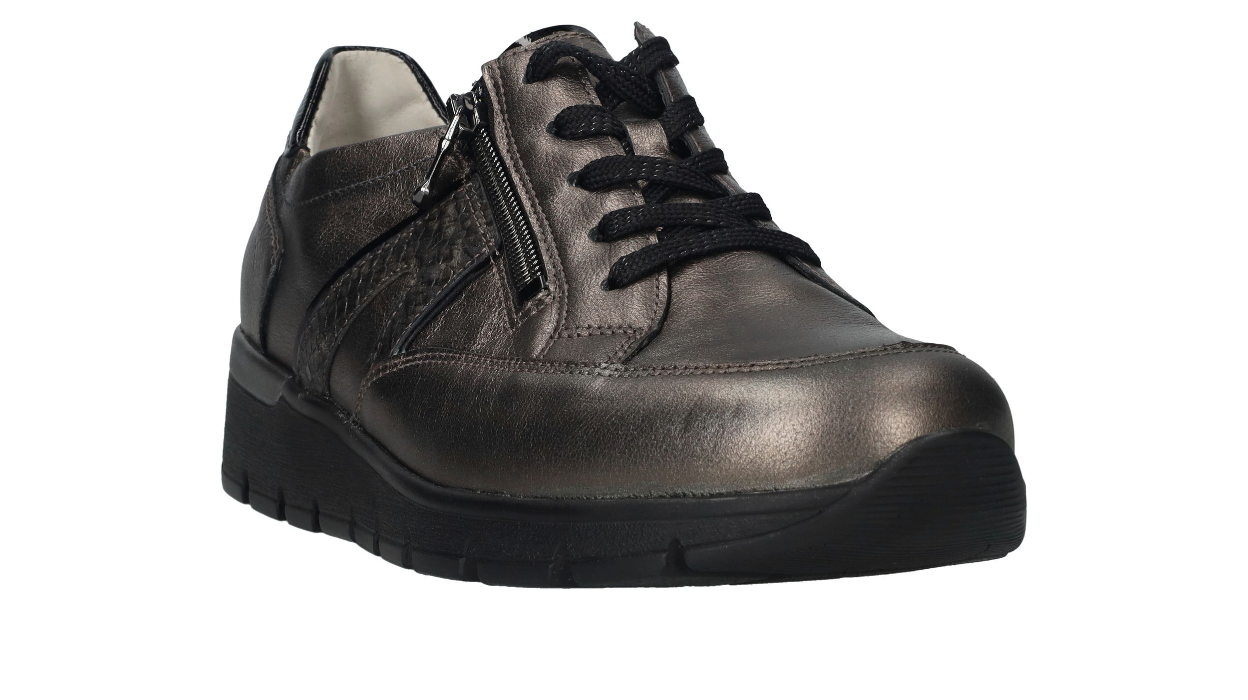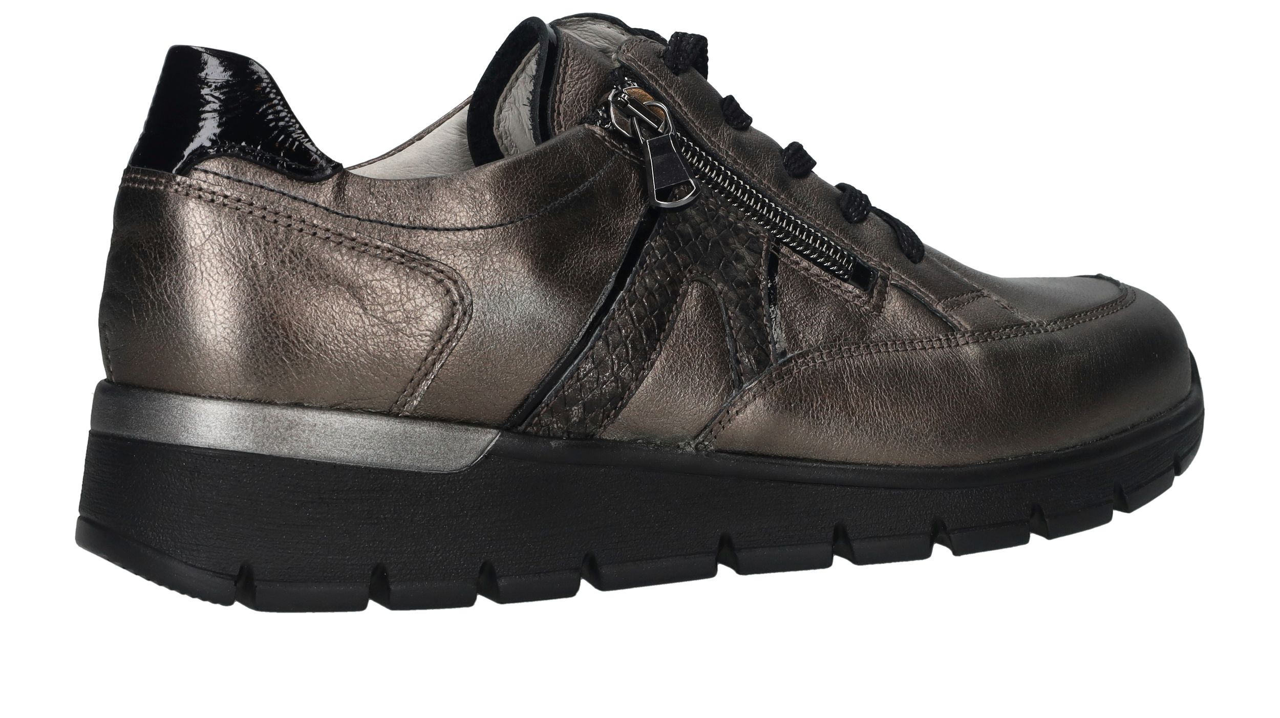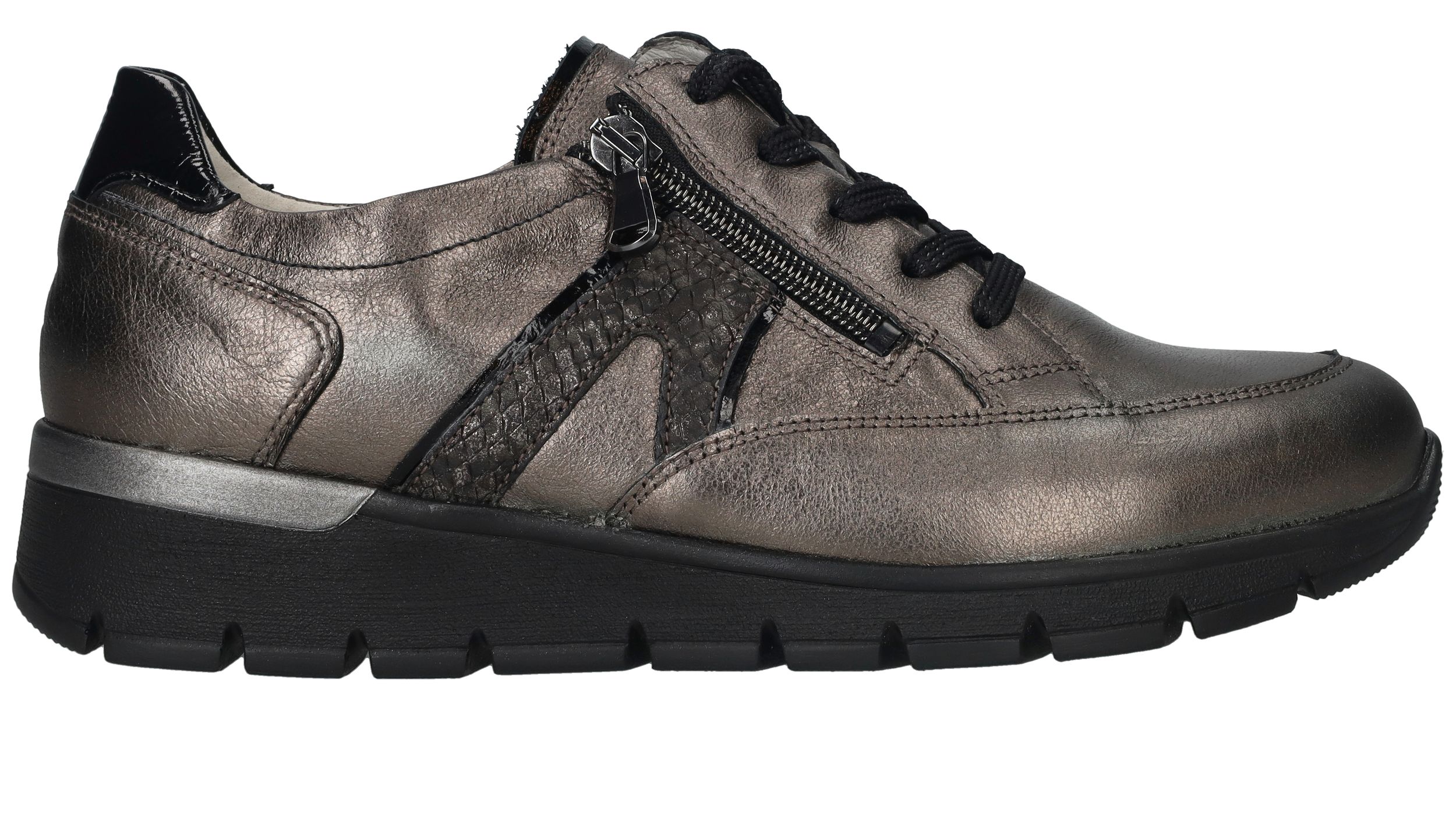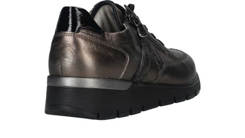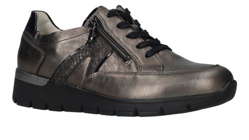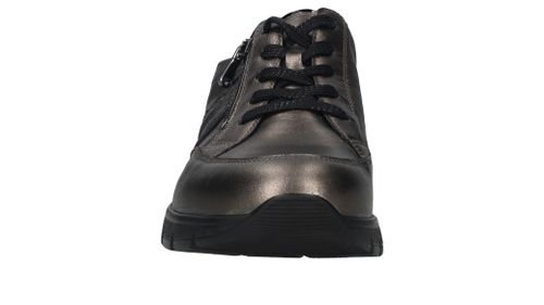 Comfortabele Waldlaufer Ramona veterschoen voor dames. De sneaker heeft een mooie metallic antraciet kleur en een je stapt er makkelijk in door de veter- en ritssluiting. De schoen heeft voetbreedte K. Dit betekent dat de schoen geschikt is voor een bredere voet.