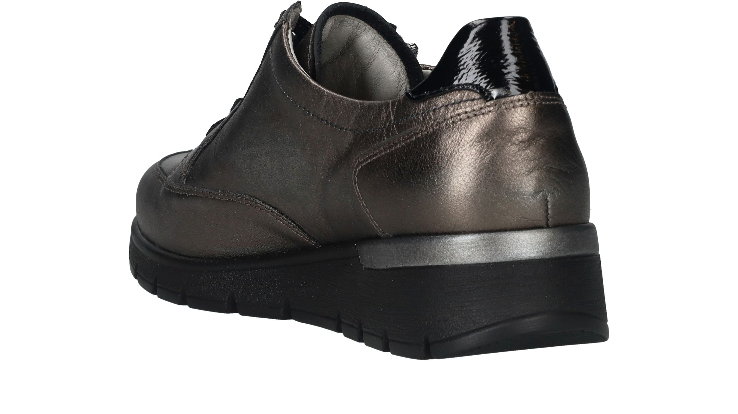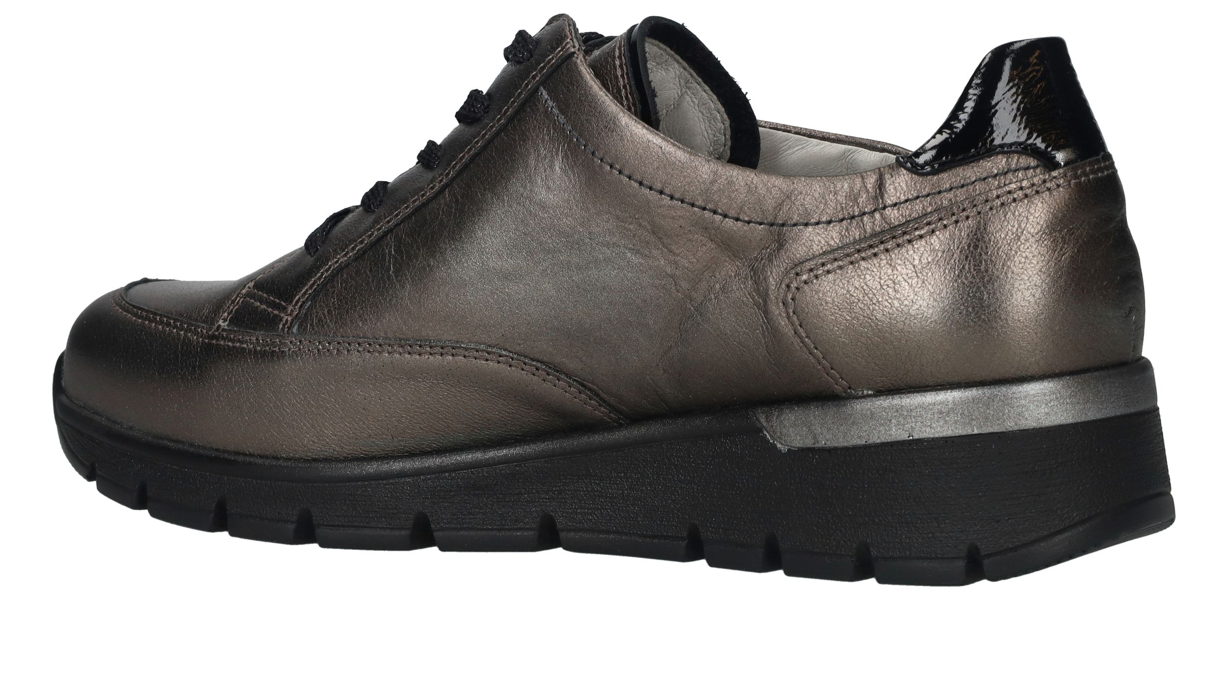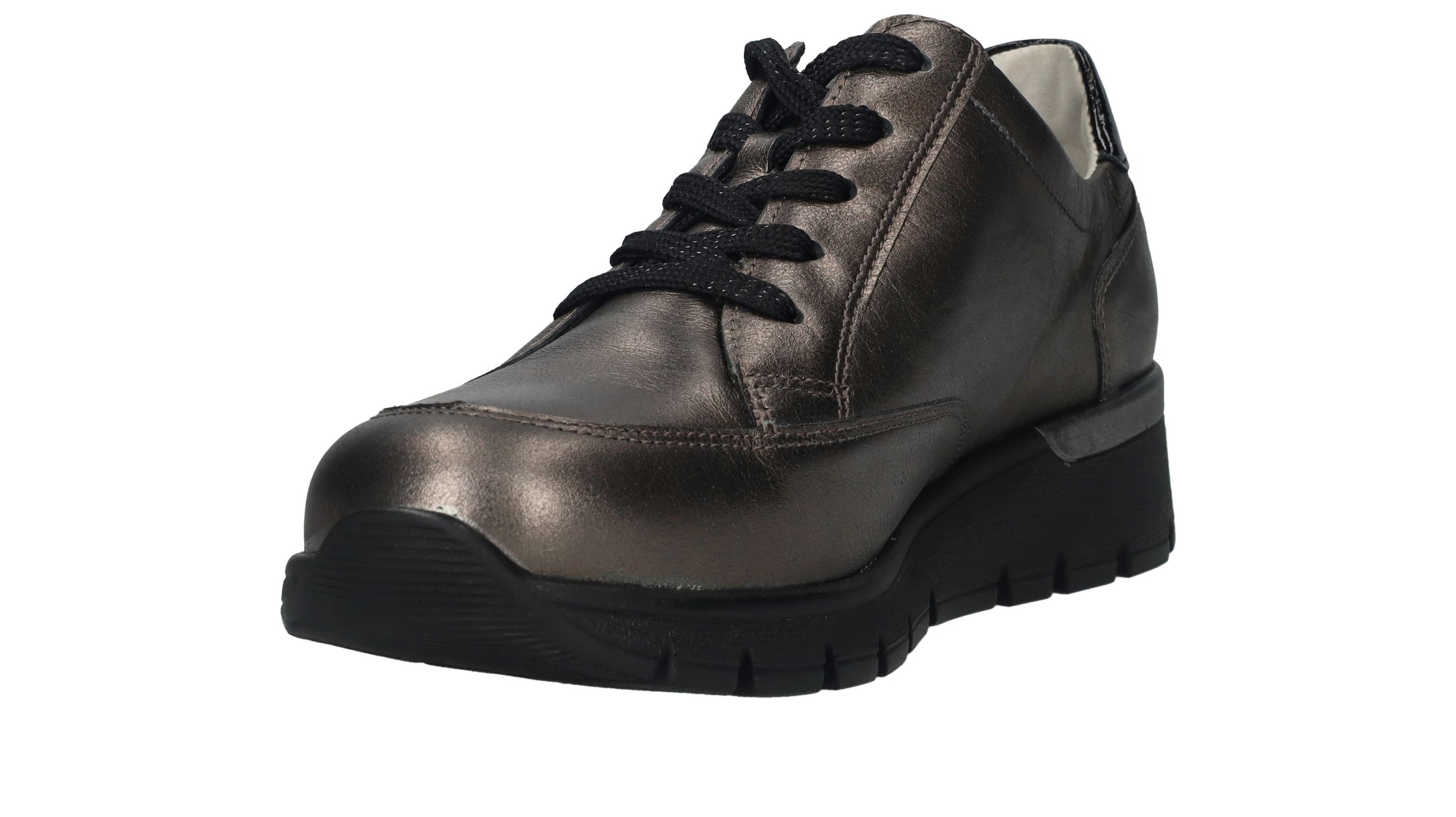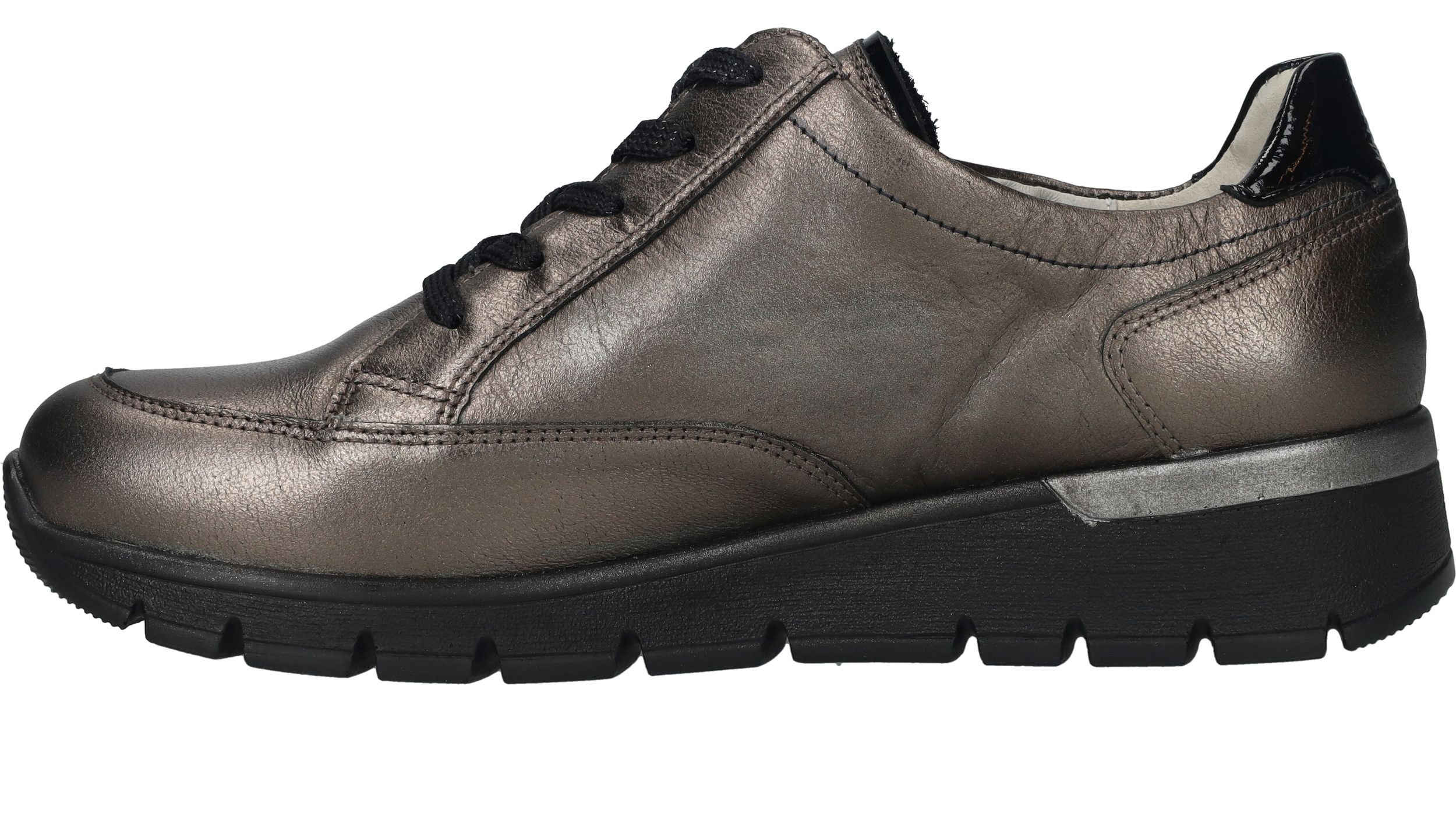 Comfortabele Waldlaufer Ramona veterschoen voor dames. De sneaker heeft een mooie metallic antraciet kleur en een je stapt er makkelijk in door de veter- en ritssluiting. De schoen heeft voetbreedte K. Dit betekent dat de schoen geschikt is voor een bredere voet.