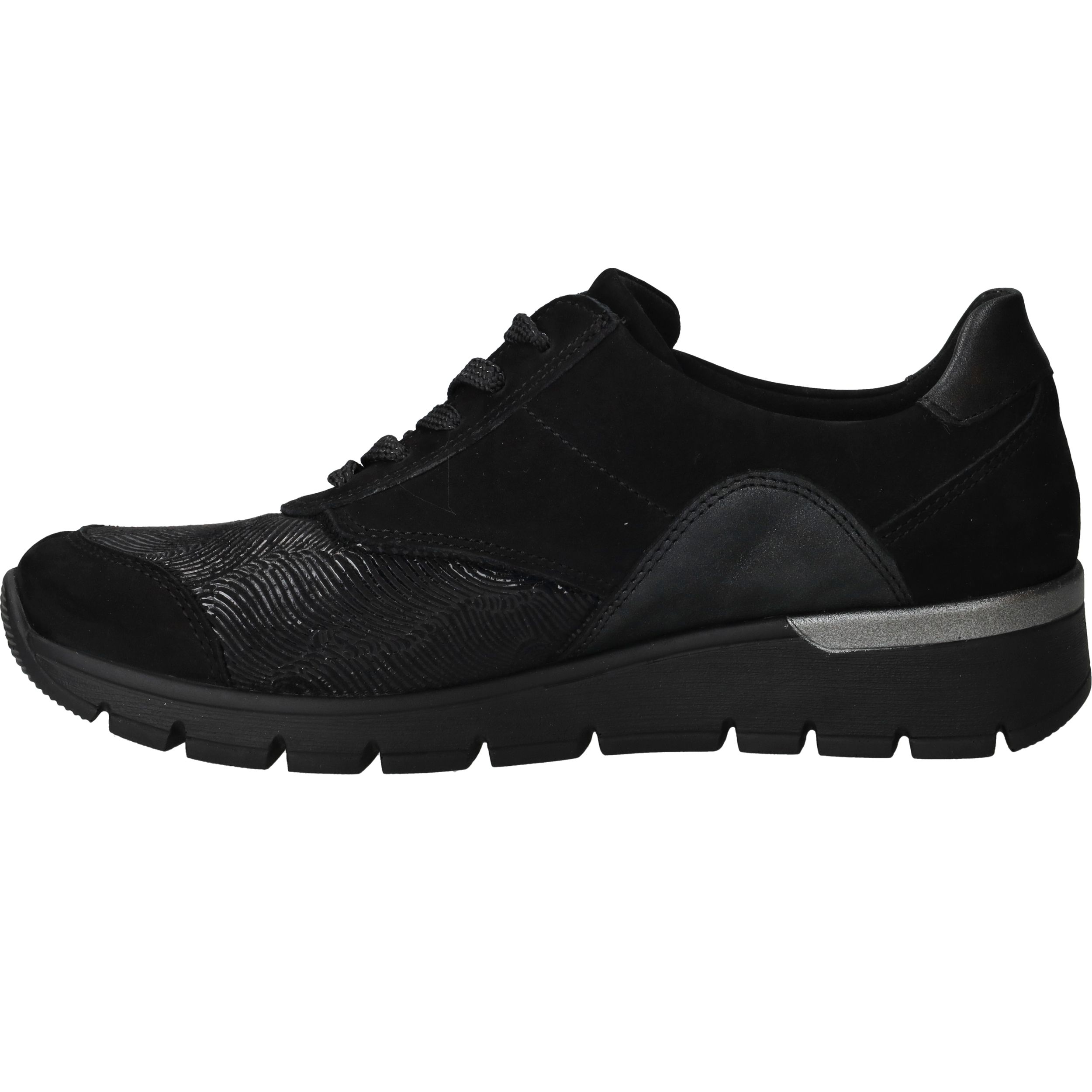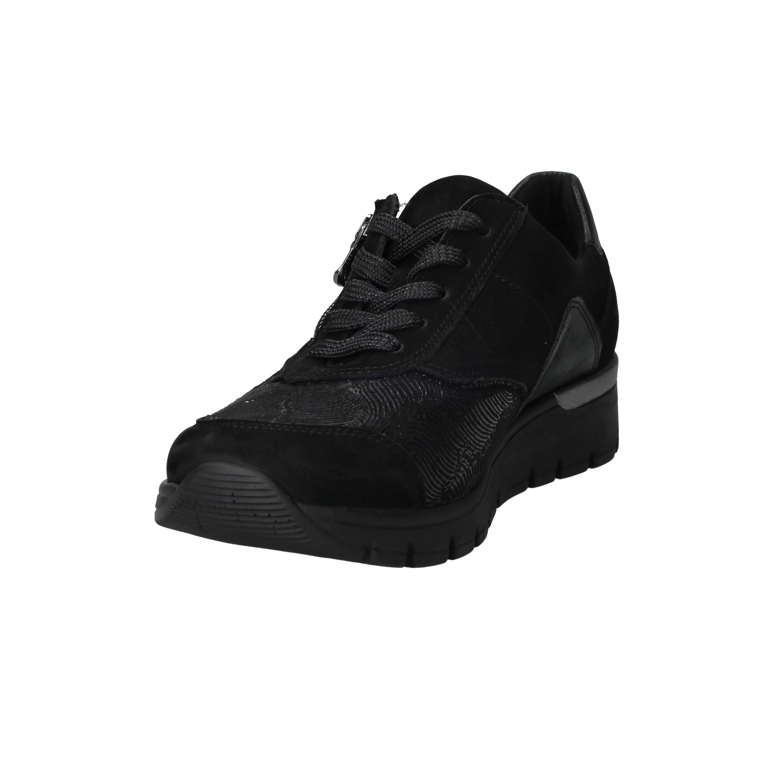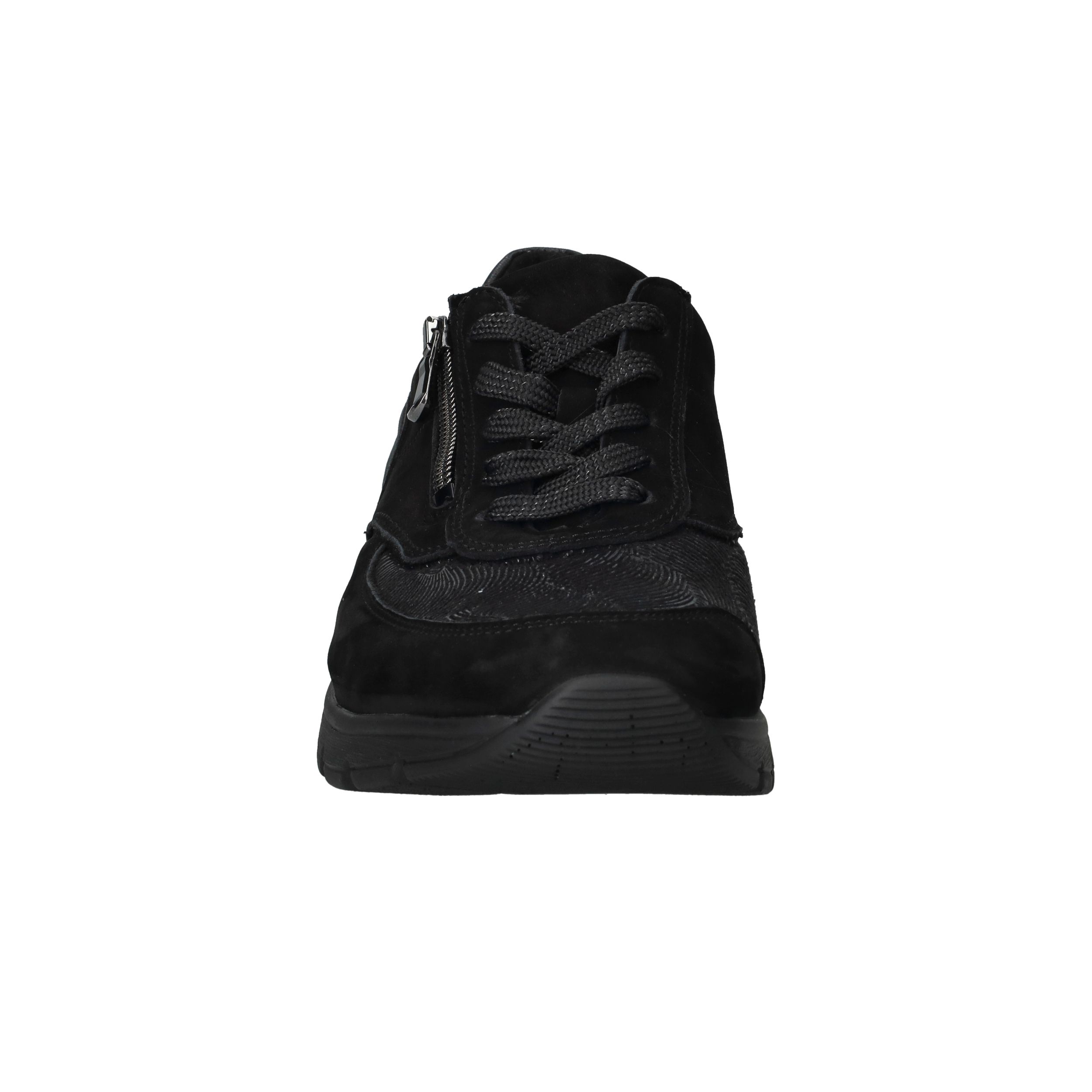 De dames sneakers Ramona van Waldläufer zijn speciaal ontworpen voor vrouwen die op zoek zijn naar comfort, ondersteuning én stijl. Deze sneaker is uitgevoerd in zwart nubuck, leer en elastisch textiel dat perfect meebeweegt met je voet. Dankzij de extra brede voetwijdte K en het lichte gewicht is dit model ideaal voor dagelijks gebruik.