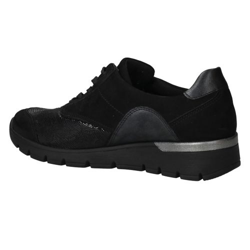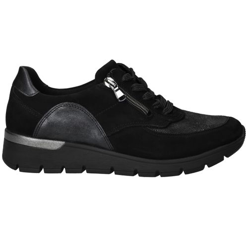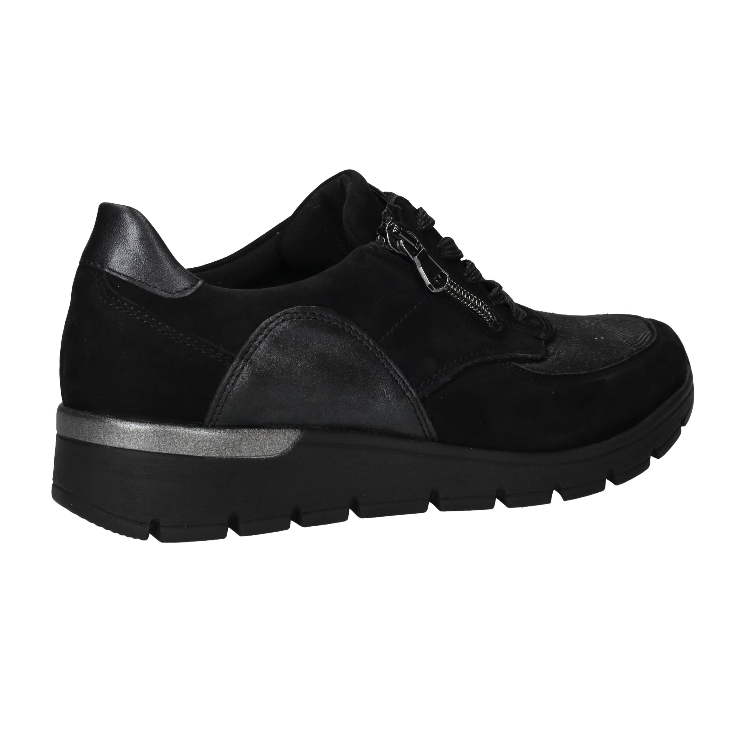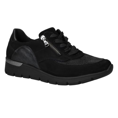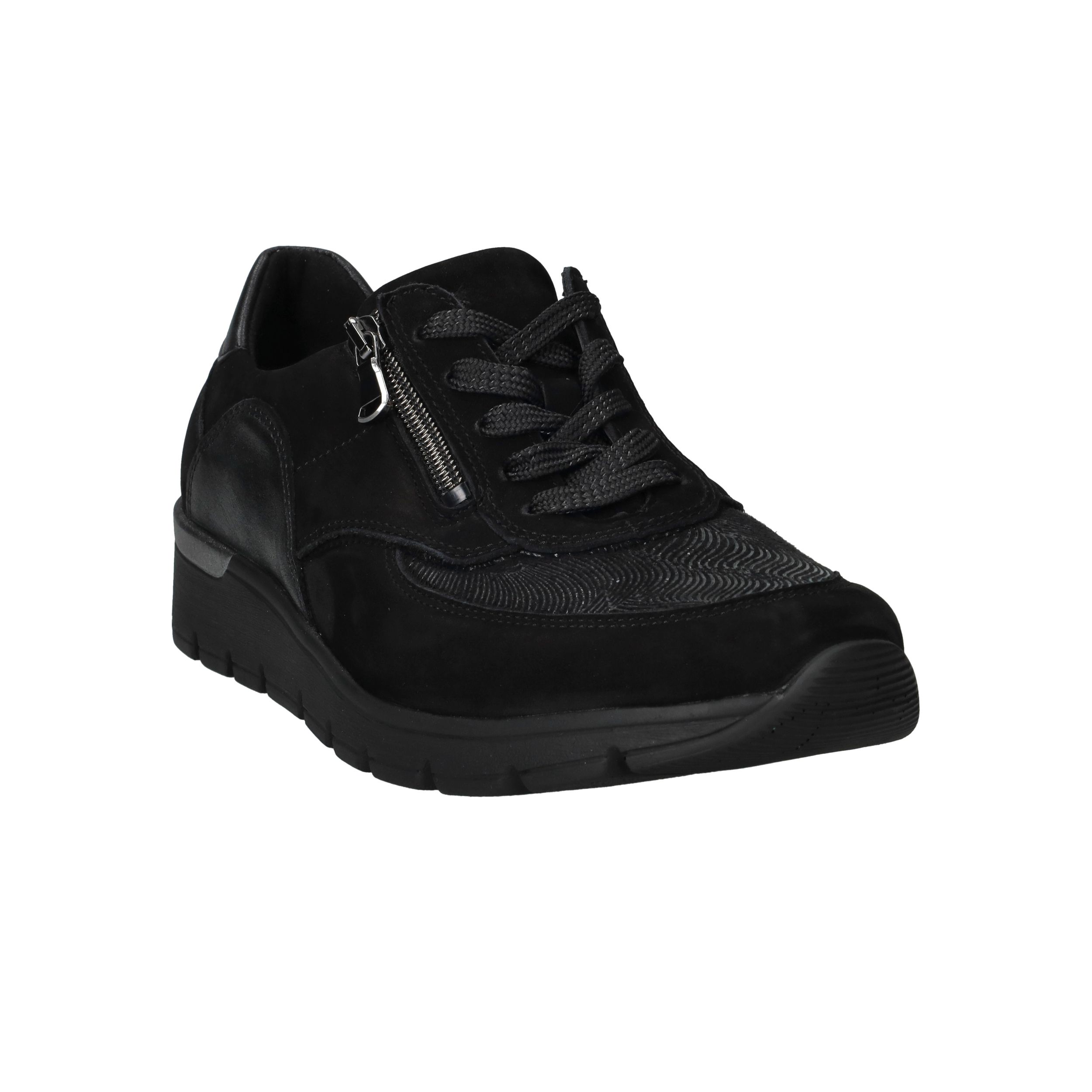 De dames sneakers Ramona van Waldläufer zijn speciaal ontworpen voor vrouwen die op zoek zijn naar comfort, ondersteuning én stijl. Deze sneaker is uitgevoerd in zwart nubuck, leer en elastisch textiel dat perfect meebeweegt met je voet. Dankzij de extra brede voetwijdte K en het lichte gewicht is dit model ideaal voor dagelijks gebruik.