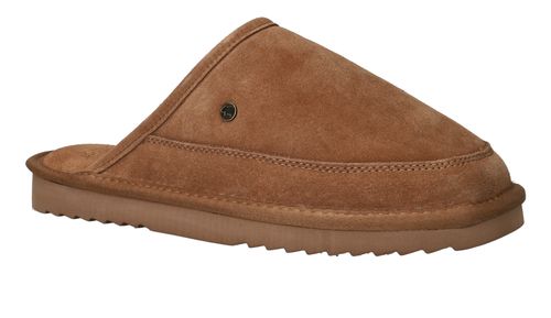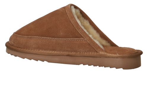 Zoek je een trendy en warme pantoffel? Ga dan voor deze cognac kleur Warmbat Cowra muil voor heren!