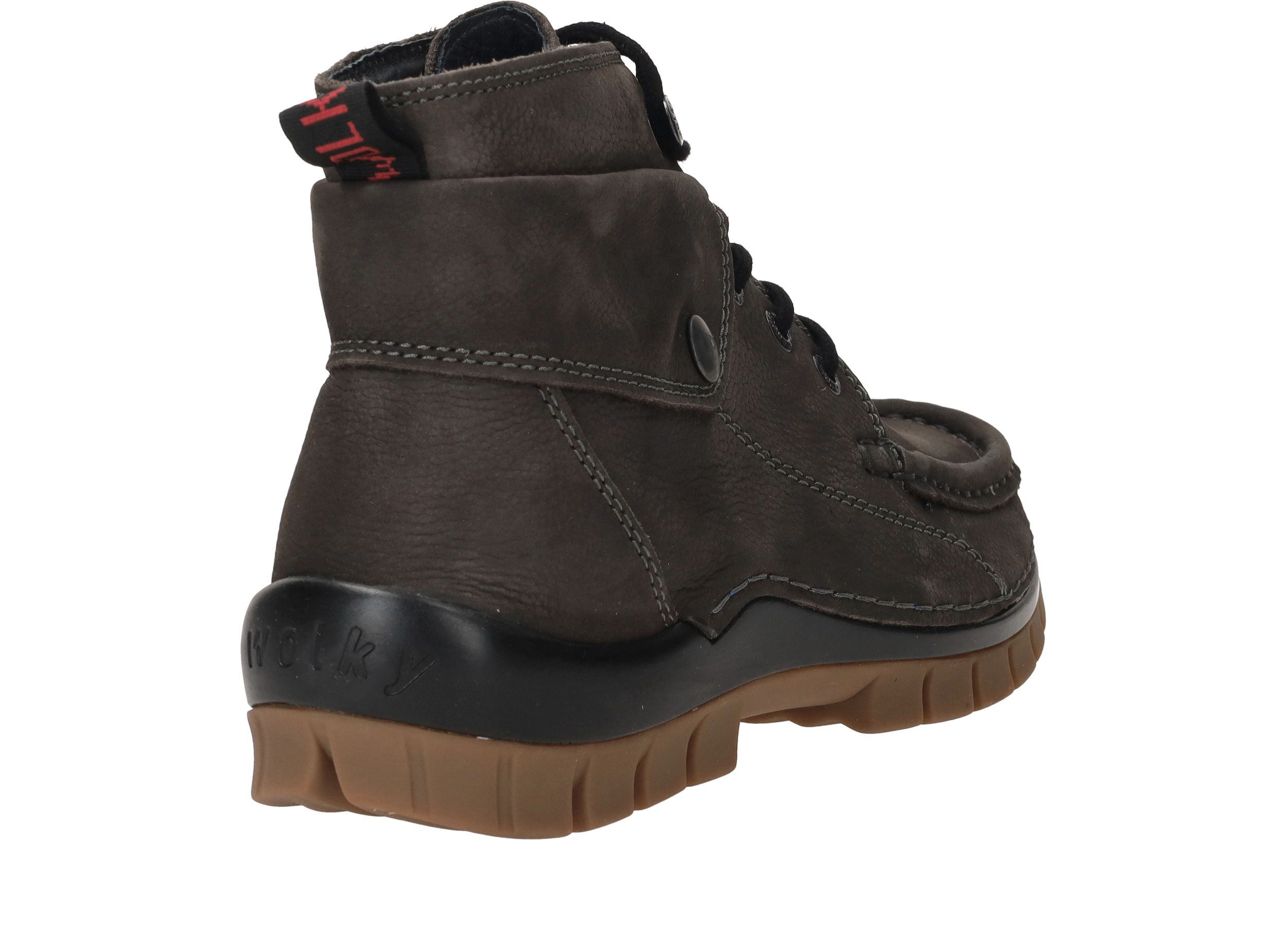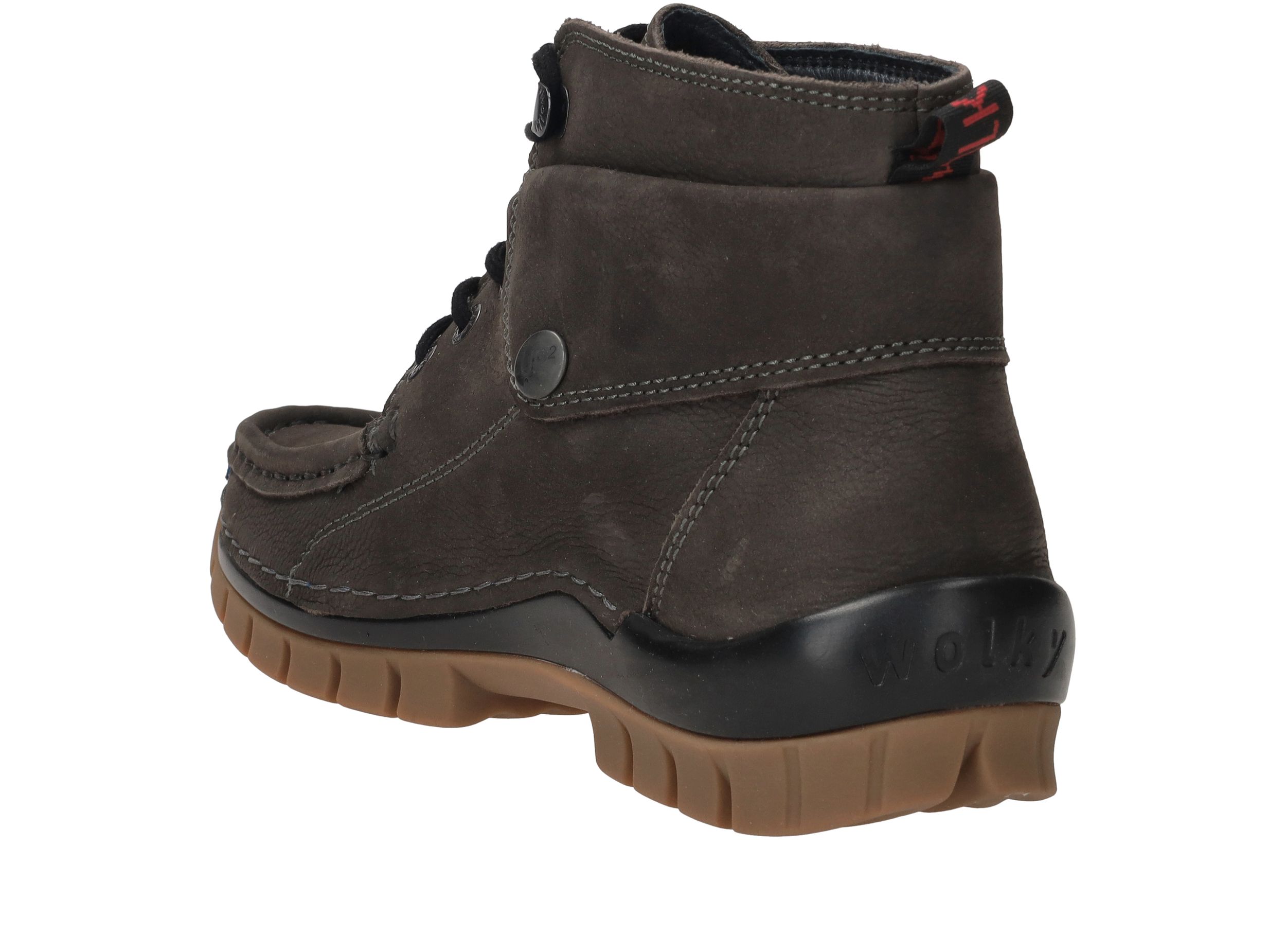 De donkergrijze Wolky Jump Winter Antique veterschoen is een perfecte combinatie van stijl en comfort. De zool biedt uitstekende grip op gladde oppervlakken, waardoor je met vertrouwen kunt lopen.