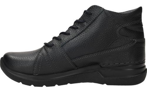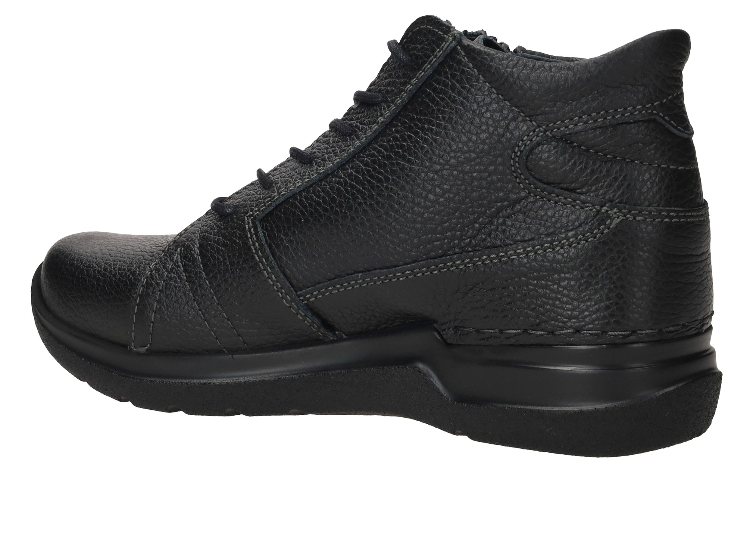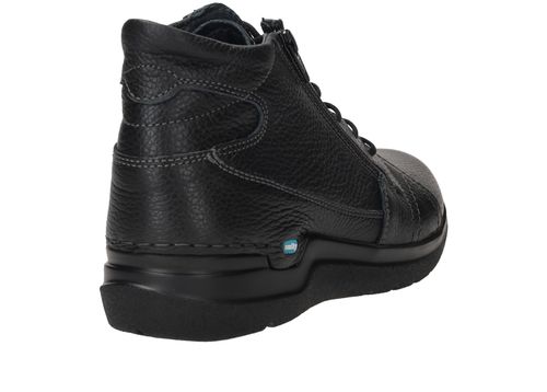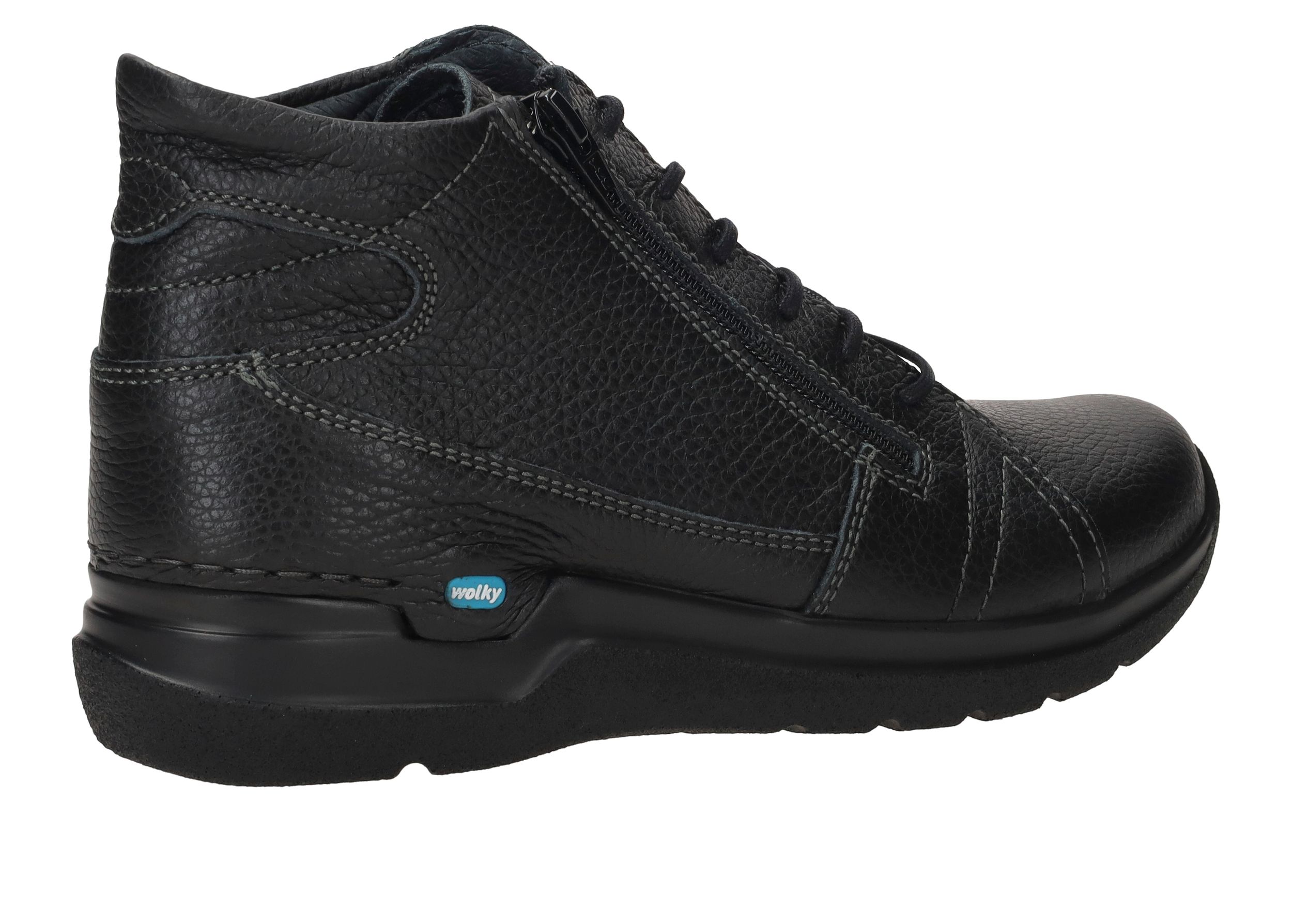 Stevige en comfortabele Wolky Why Floather veterschoen voor dames. De zwarte schoen is gemaakt van leer.