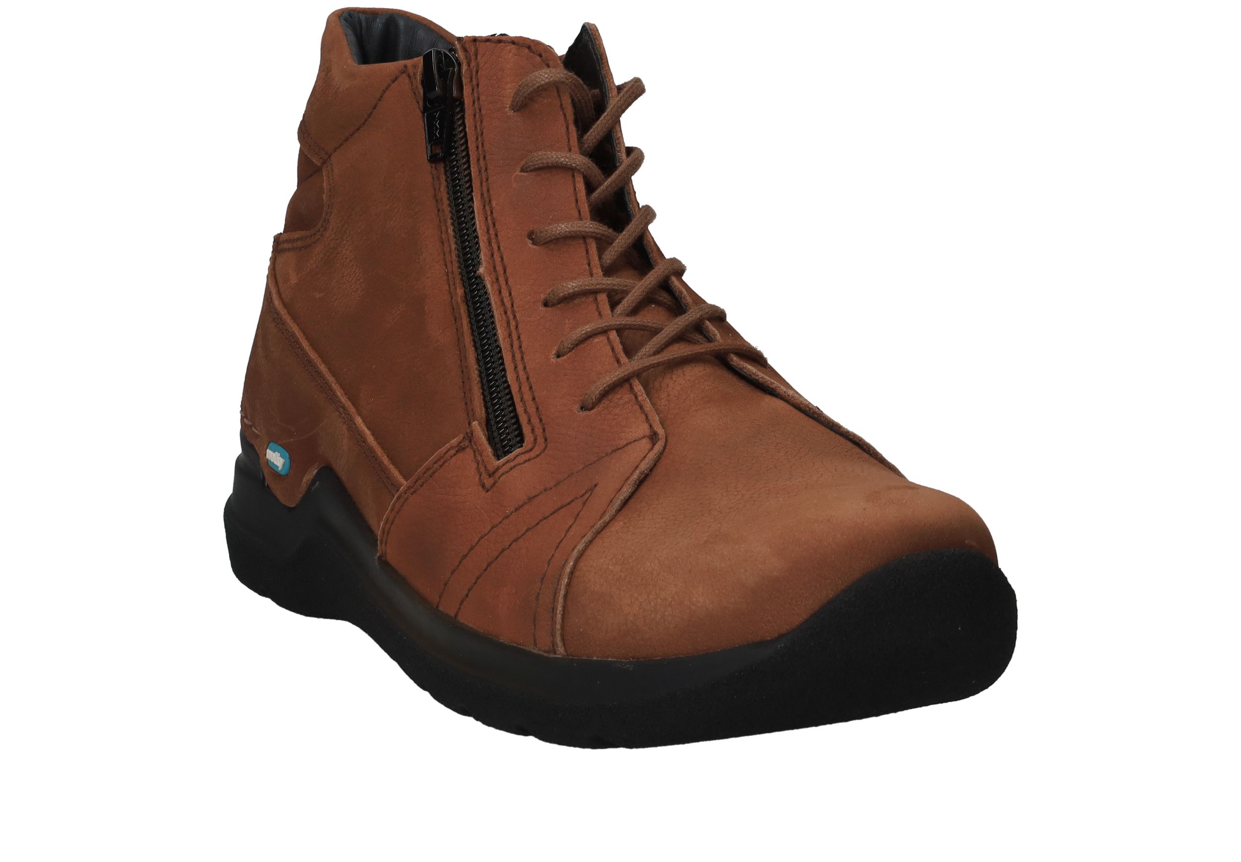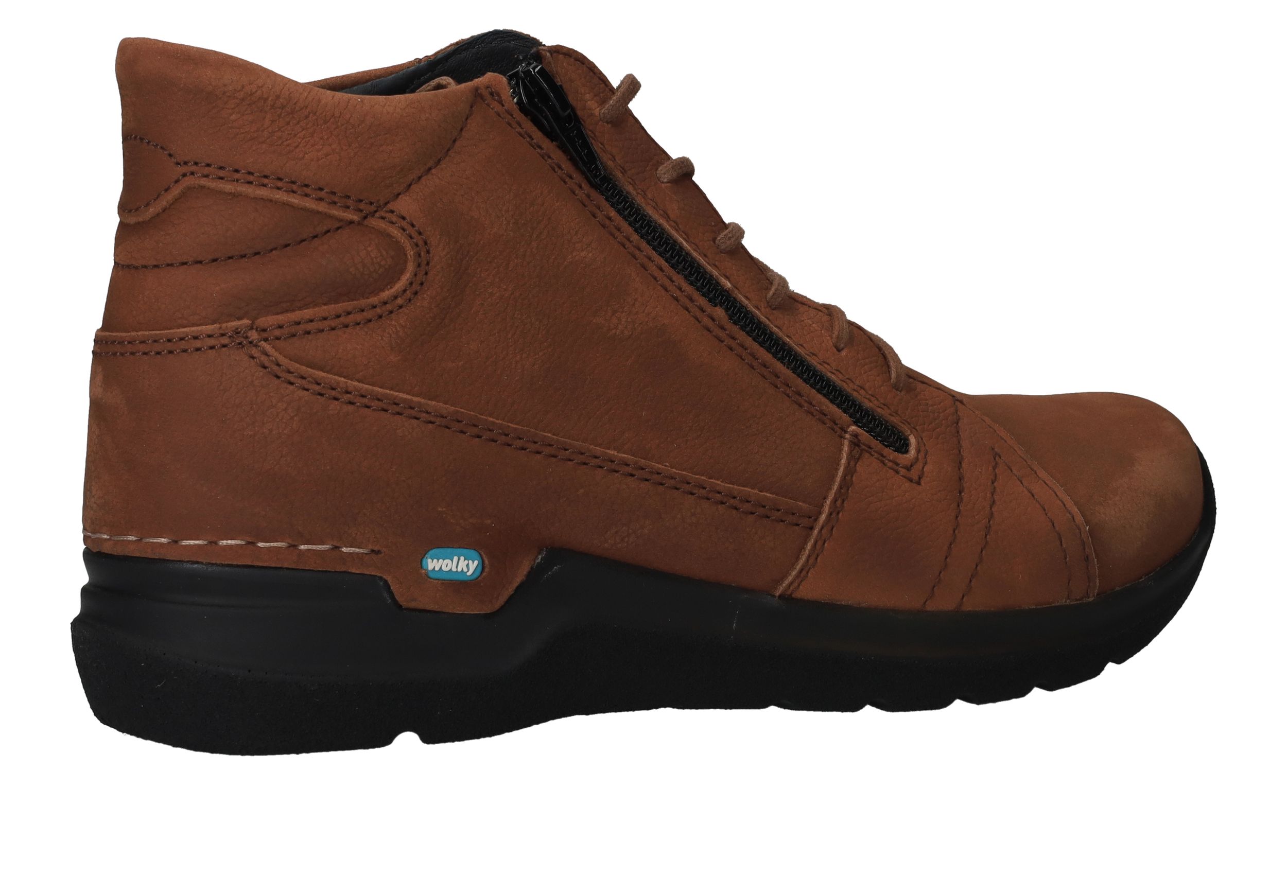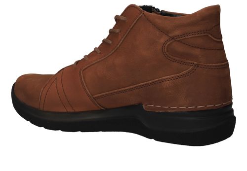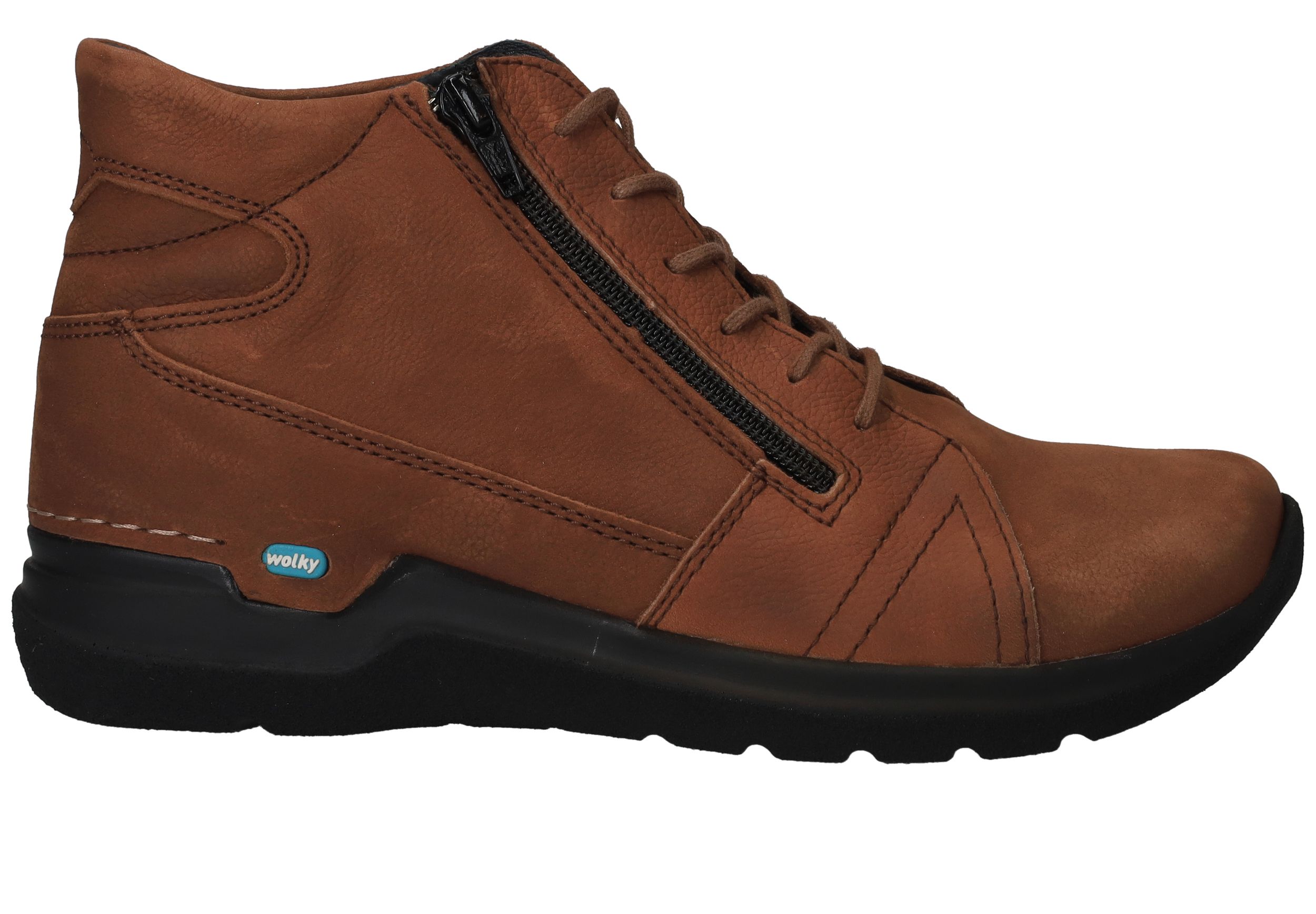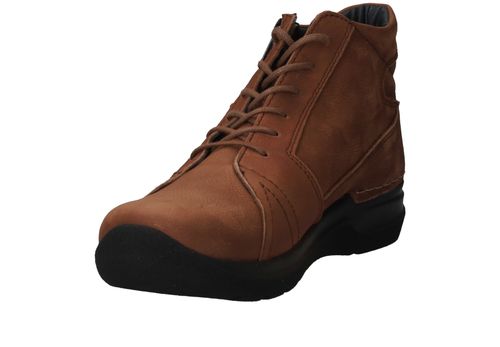 Stevige en comfortabele Wolky Why veterschoen voor dames. De schoen heeft een warme cognac kleur en is gemaakt van nubuck.