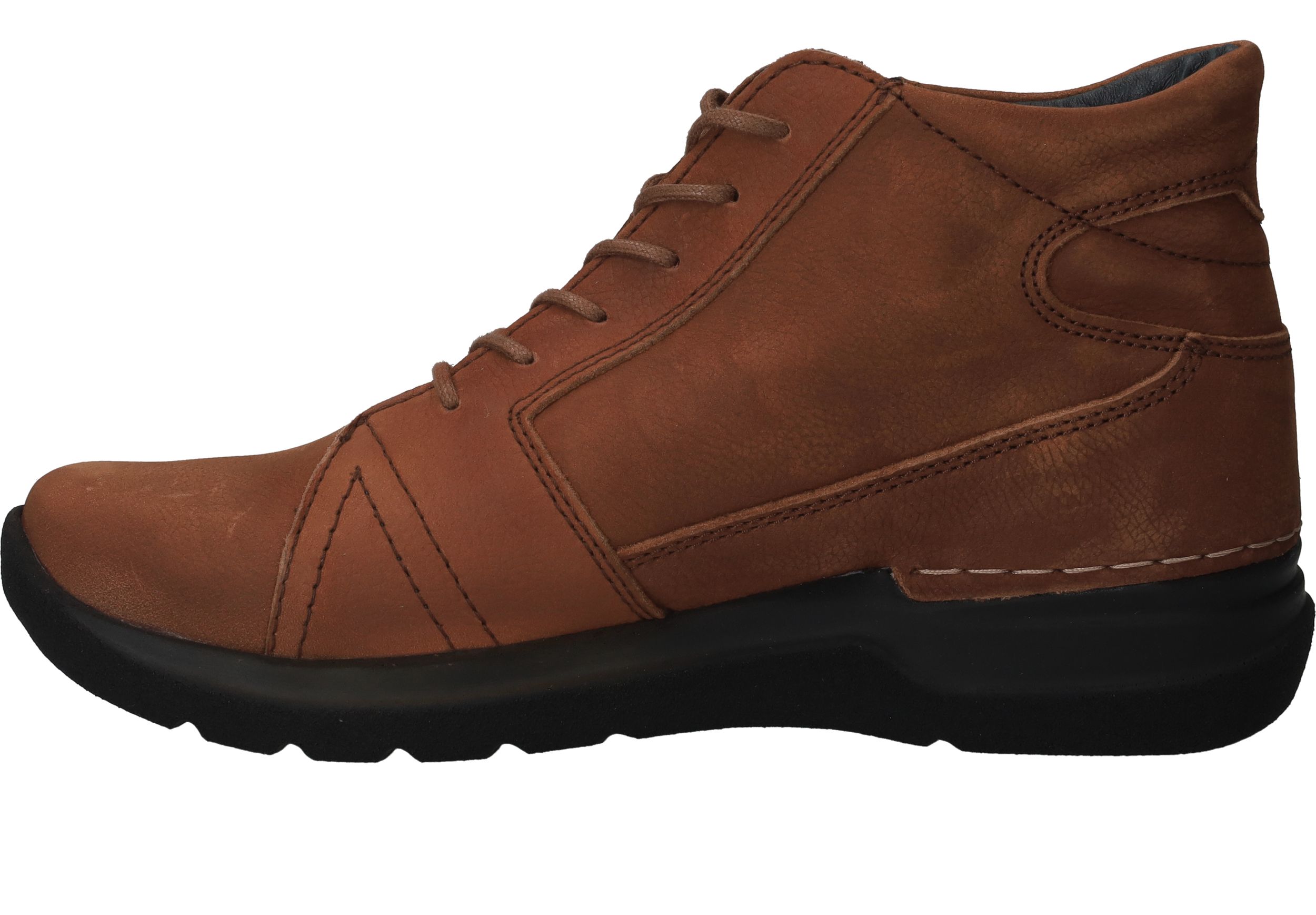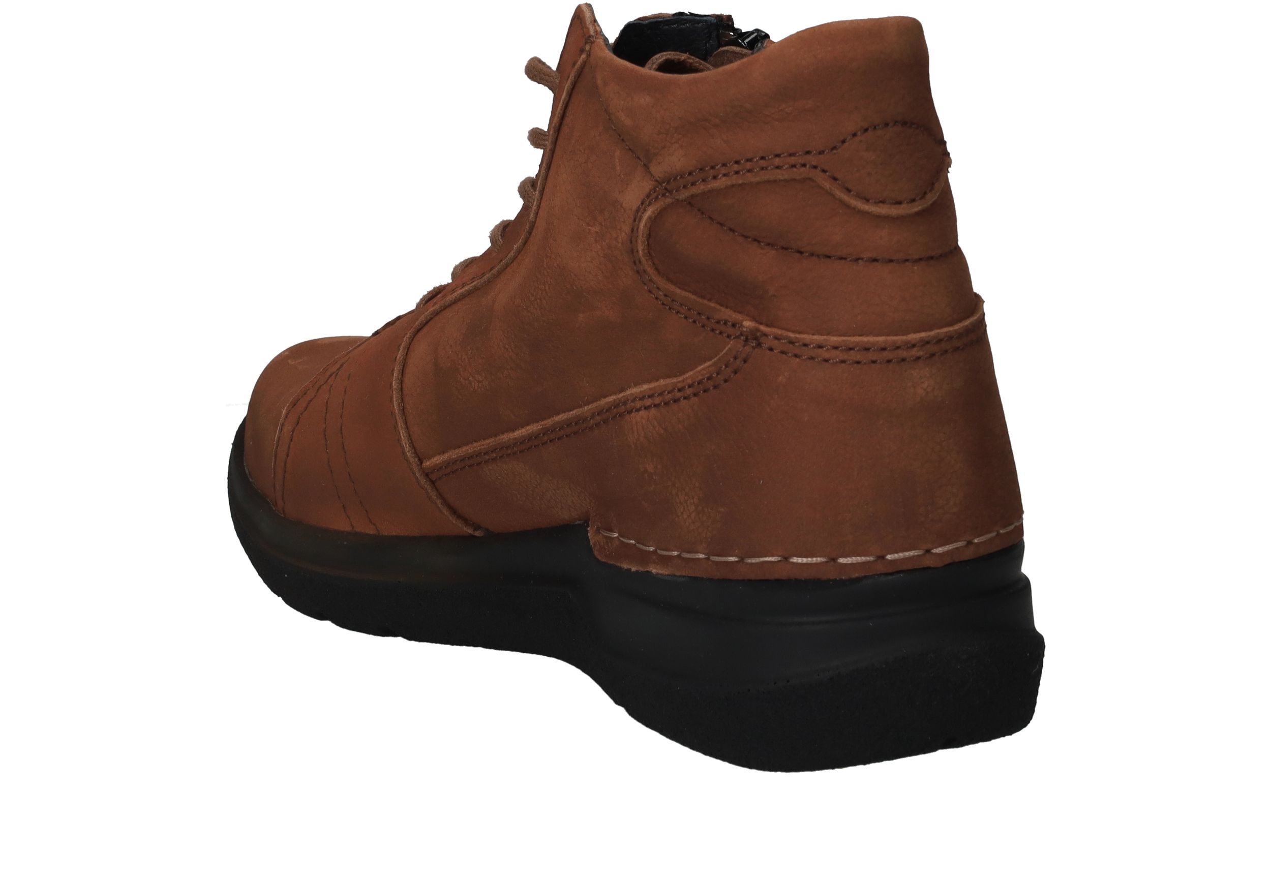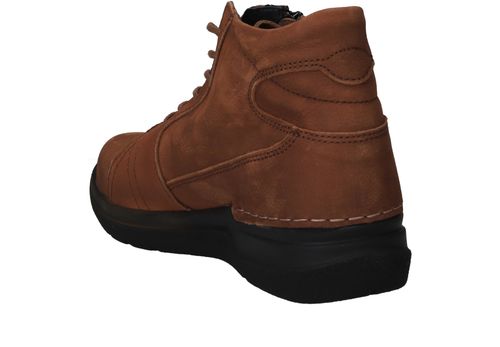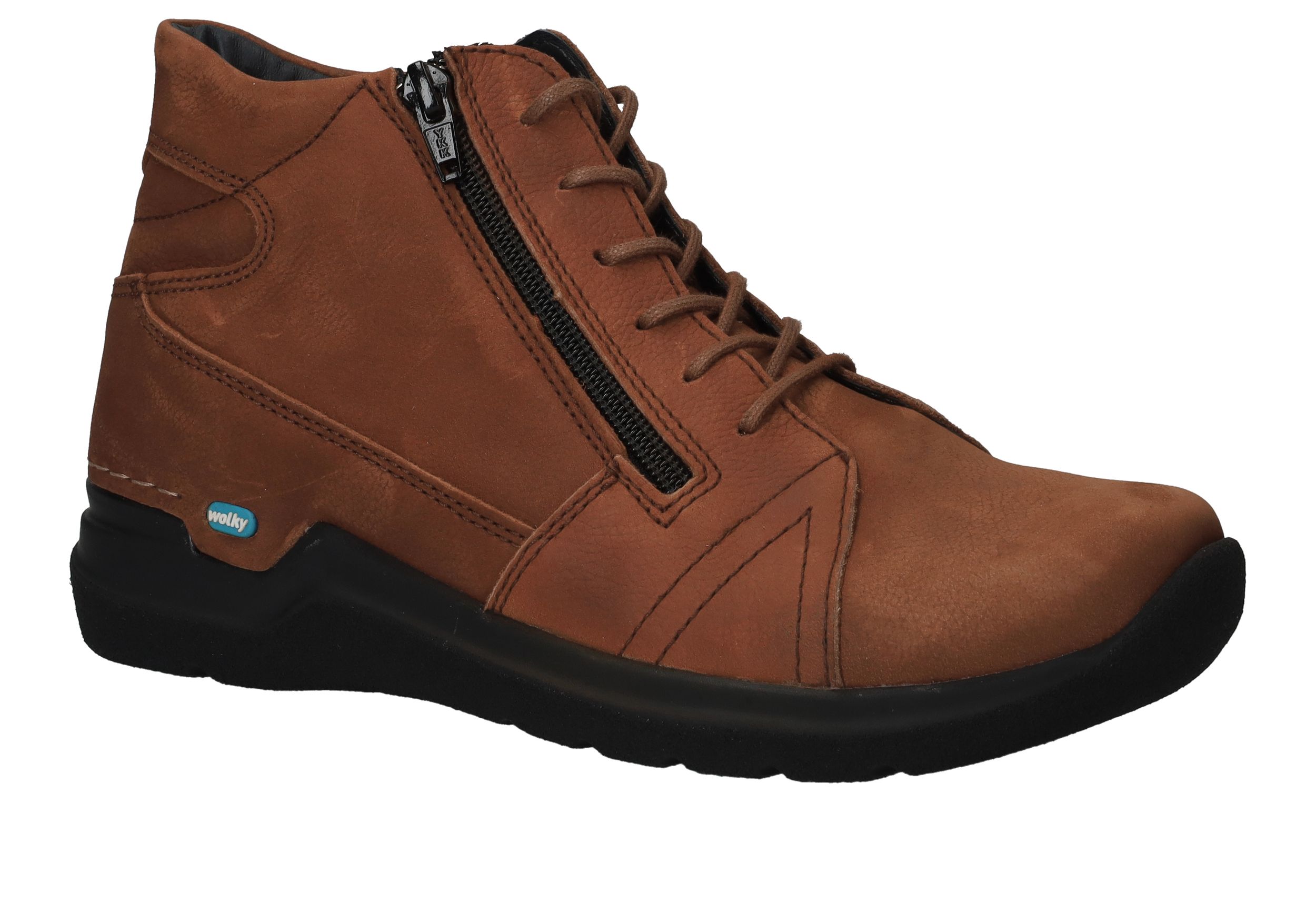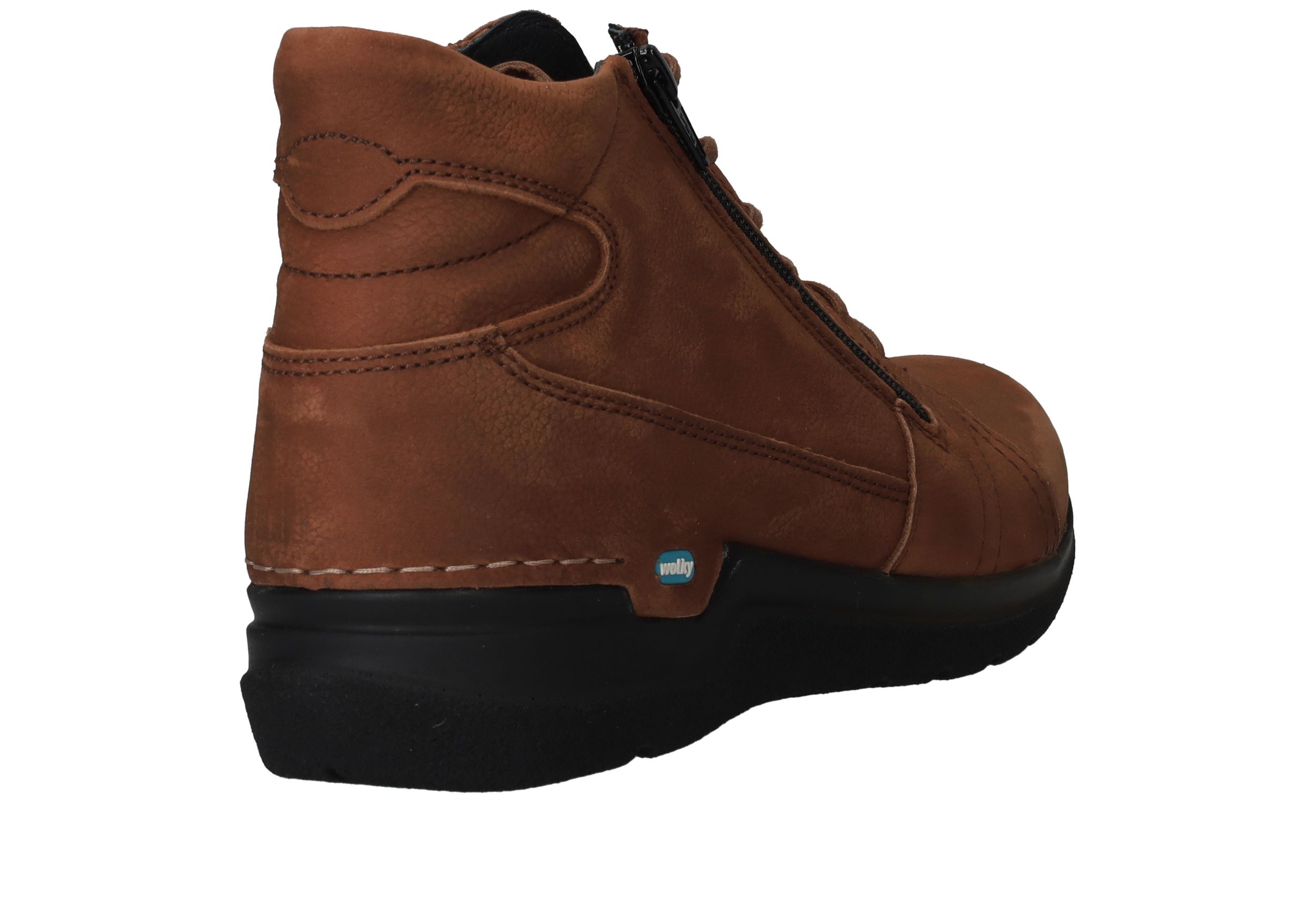 Stevige en comfortabele Wolky Why veterschoen voor dames. De schoen heeft een warme cognac kleur en is gemaakt van nubuck.