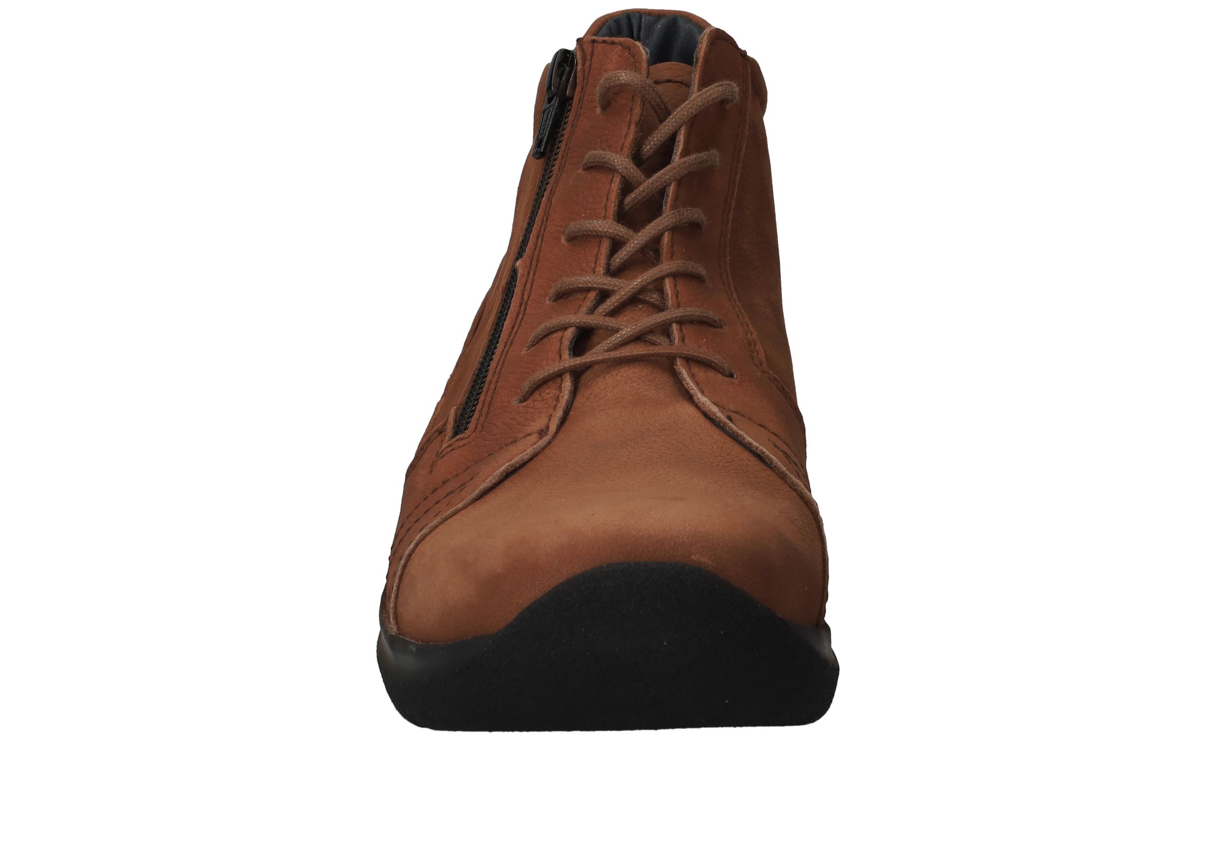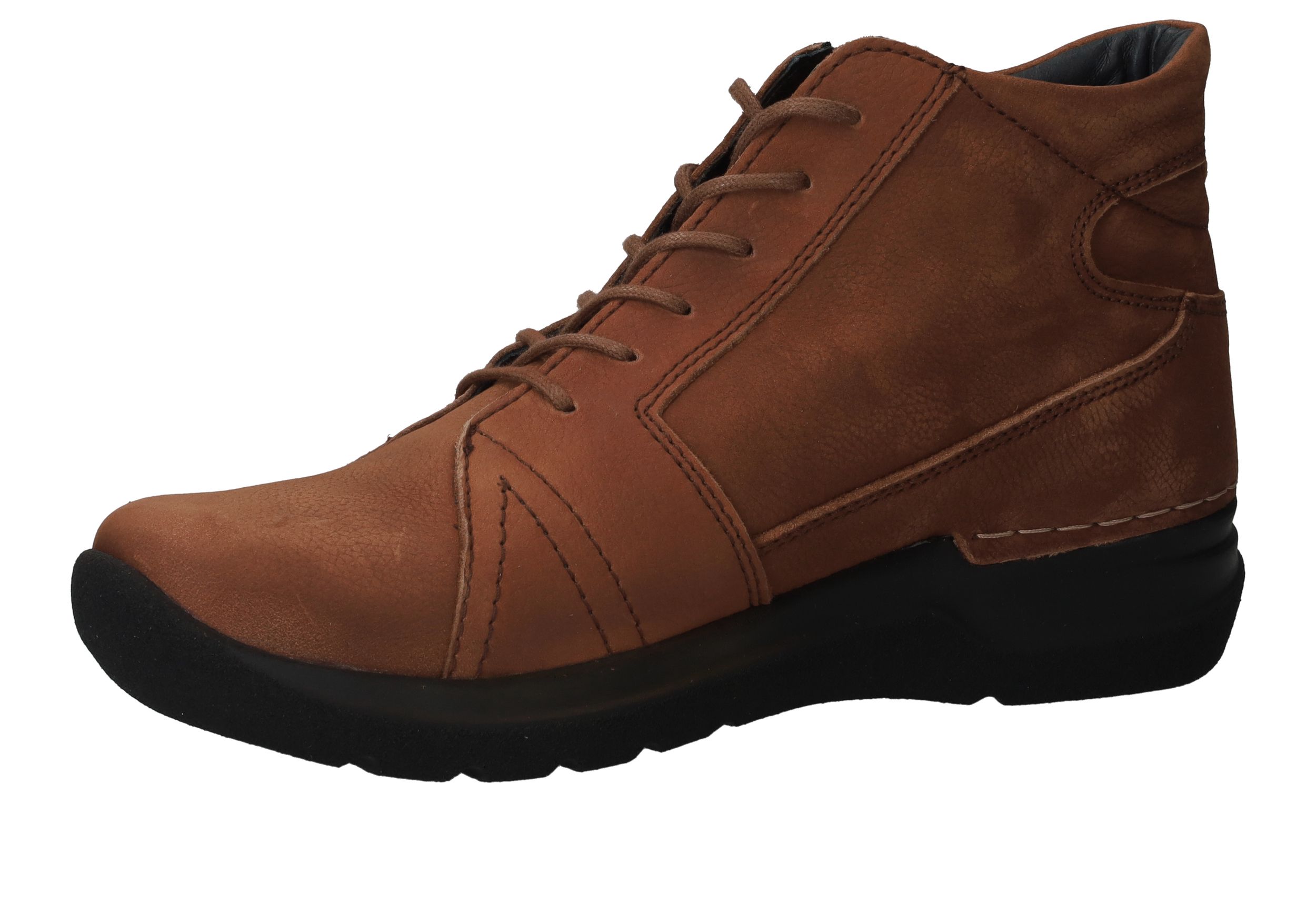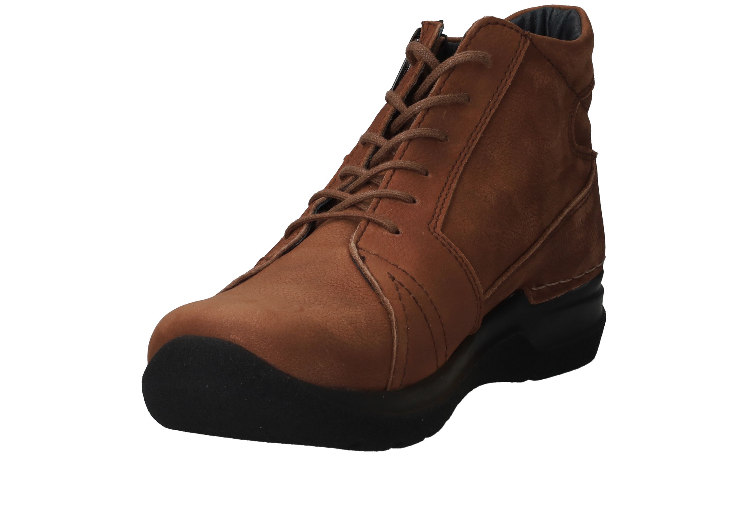 Stevige en comfortabele Wolky Why veterschoen voor dames. De schoen heeft een warme cognac kleur en is gemaakt van nubuck.