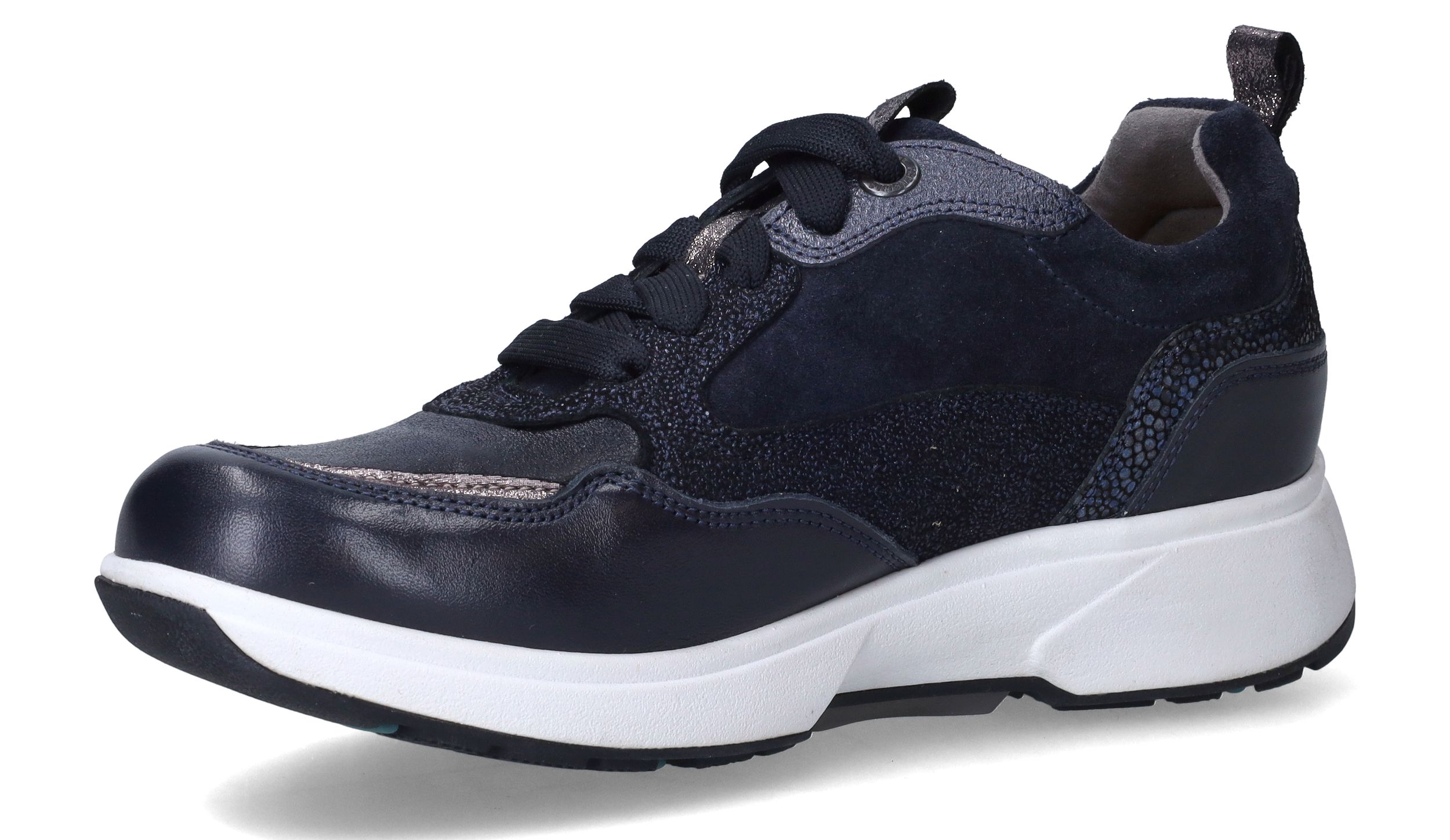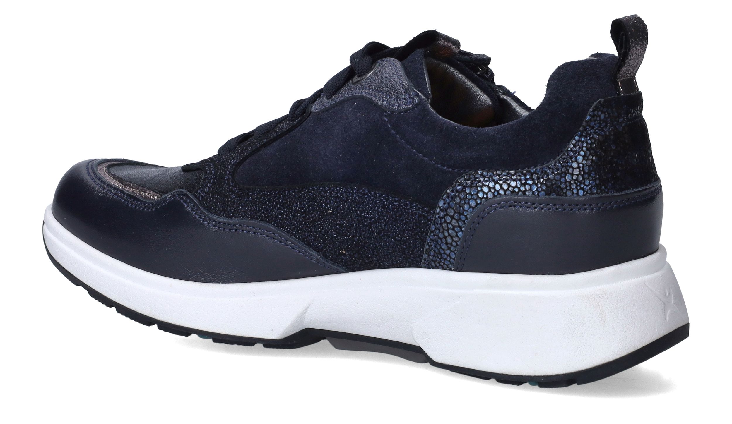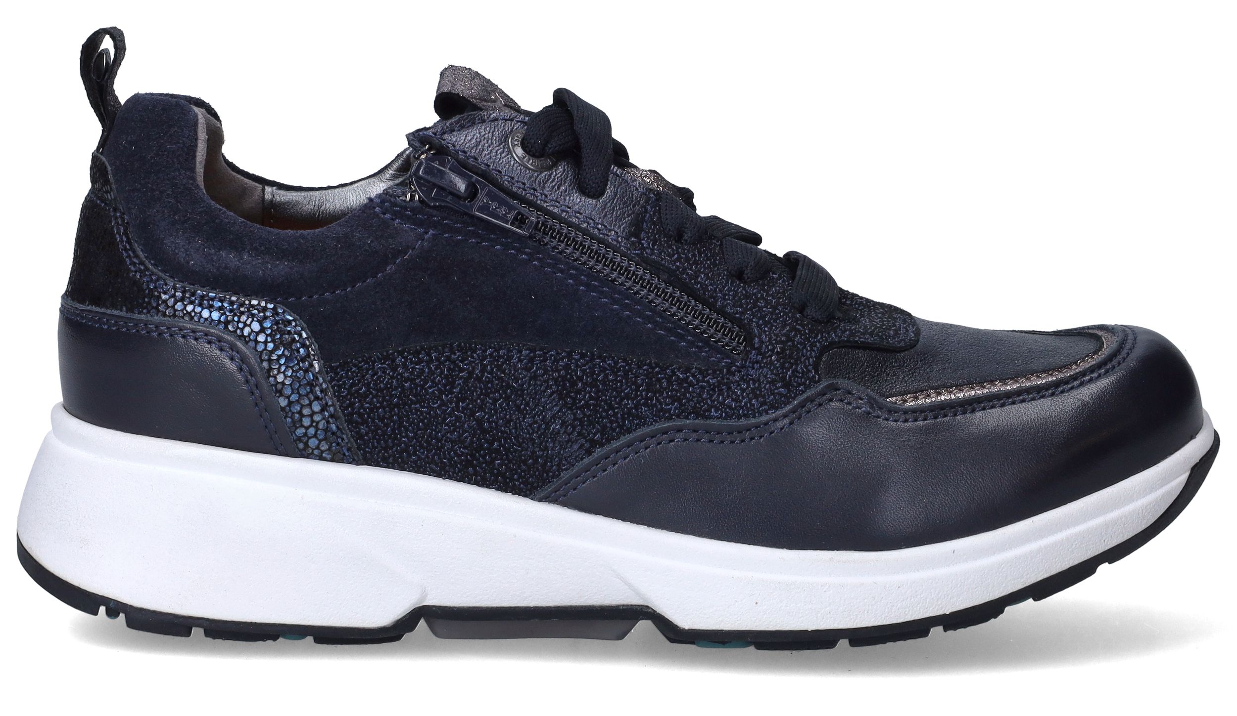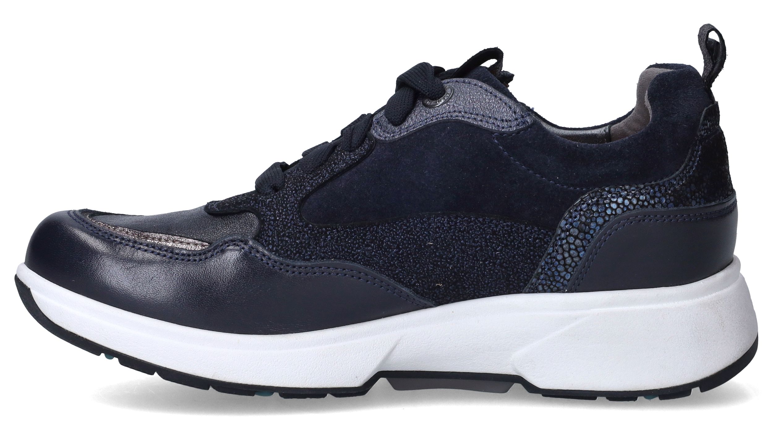 De Xsensible Grenoble Lady Stretchwalker voor dames in het donkerblauw met zilver/grijze details is een perfecte combinatie van stijl en comfort. Deze schoenen zijn ontworpen voor vrouwen die waarde hechten aan een modern design, een uitstekende pasvorm en blije voeten.