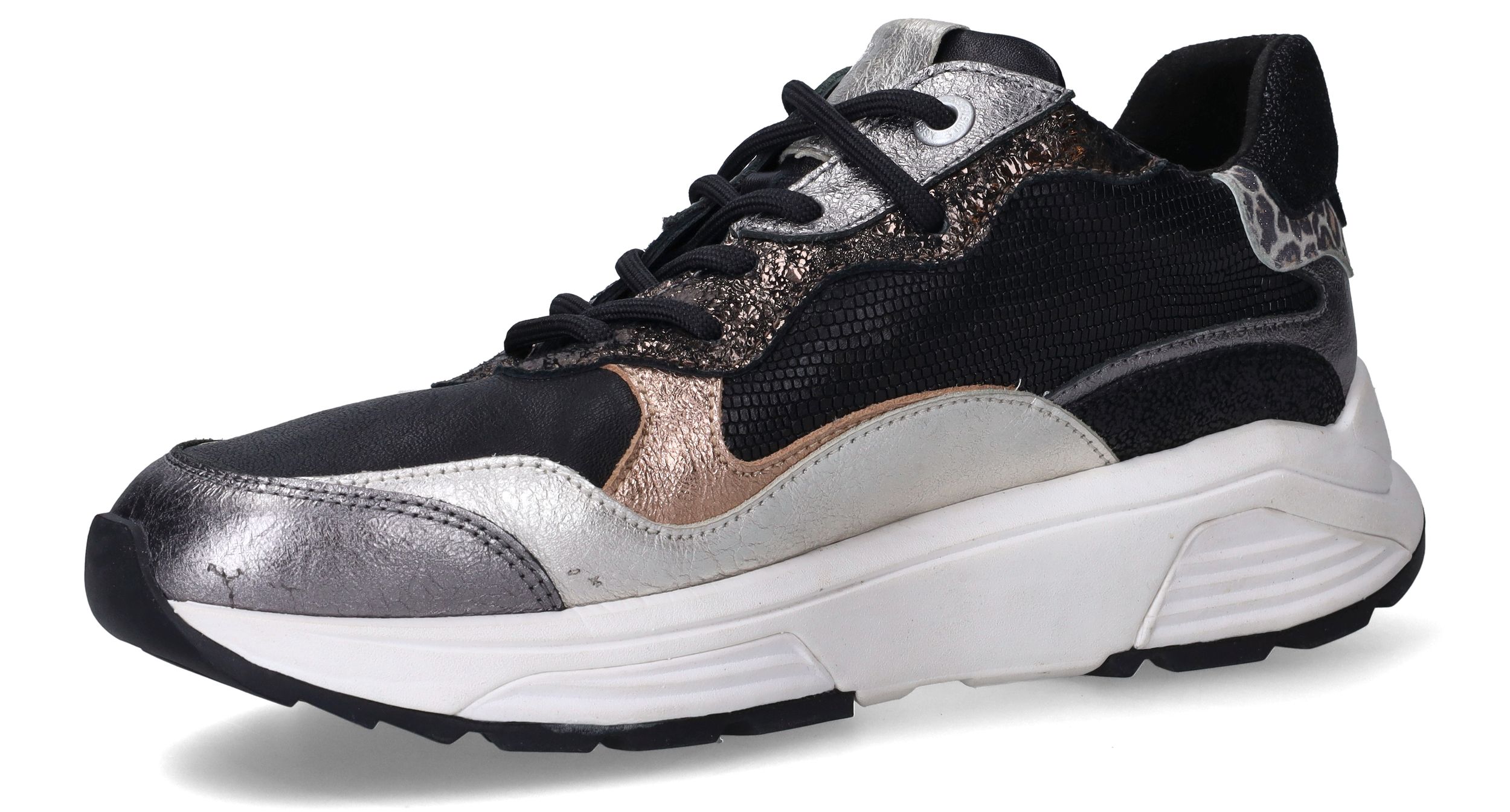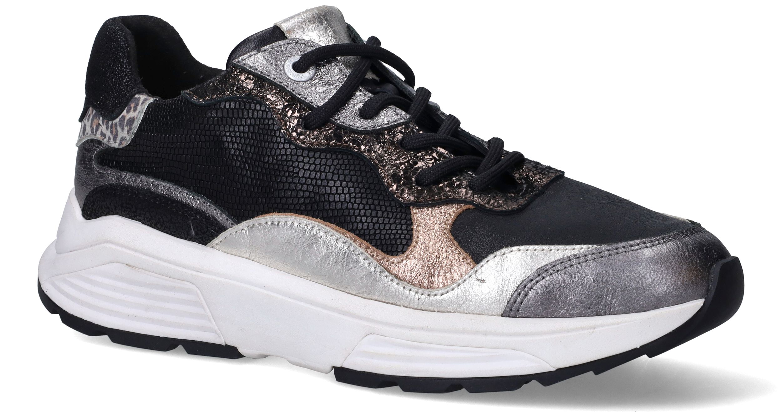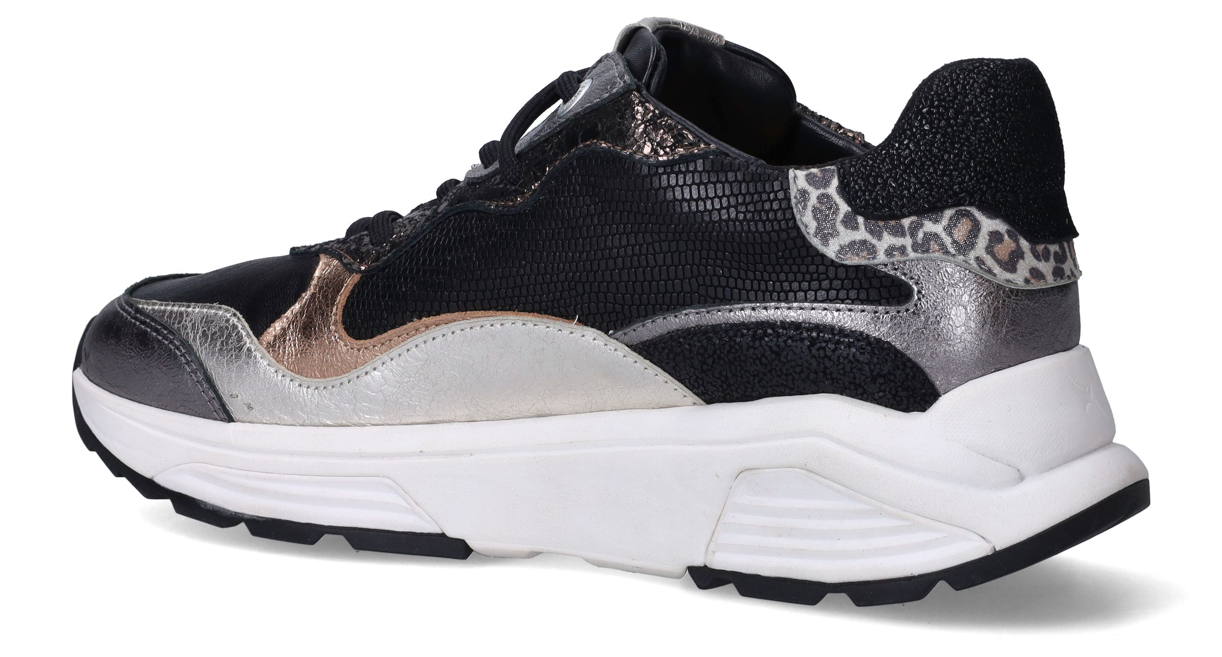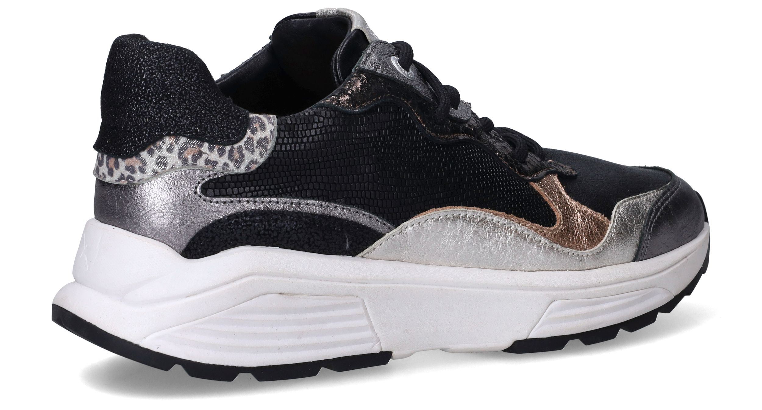 De Xsensible Rainbow sneaker is een echte blikvanger met zijn mix van glanzende metallics, zwart textiel en subtiele dierenprintaccenten. Deze modieuze schoen biedt niet alleen een opvallend design, maar ook het comfort en de ondersteuning die je van Xsensible gewend bent. Perfect voor dames die willen opvallen zonder in te leveren op loopgemak.