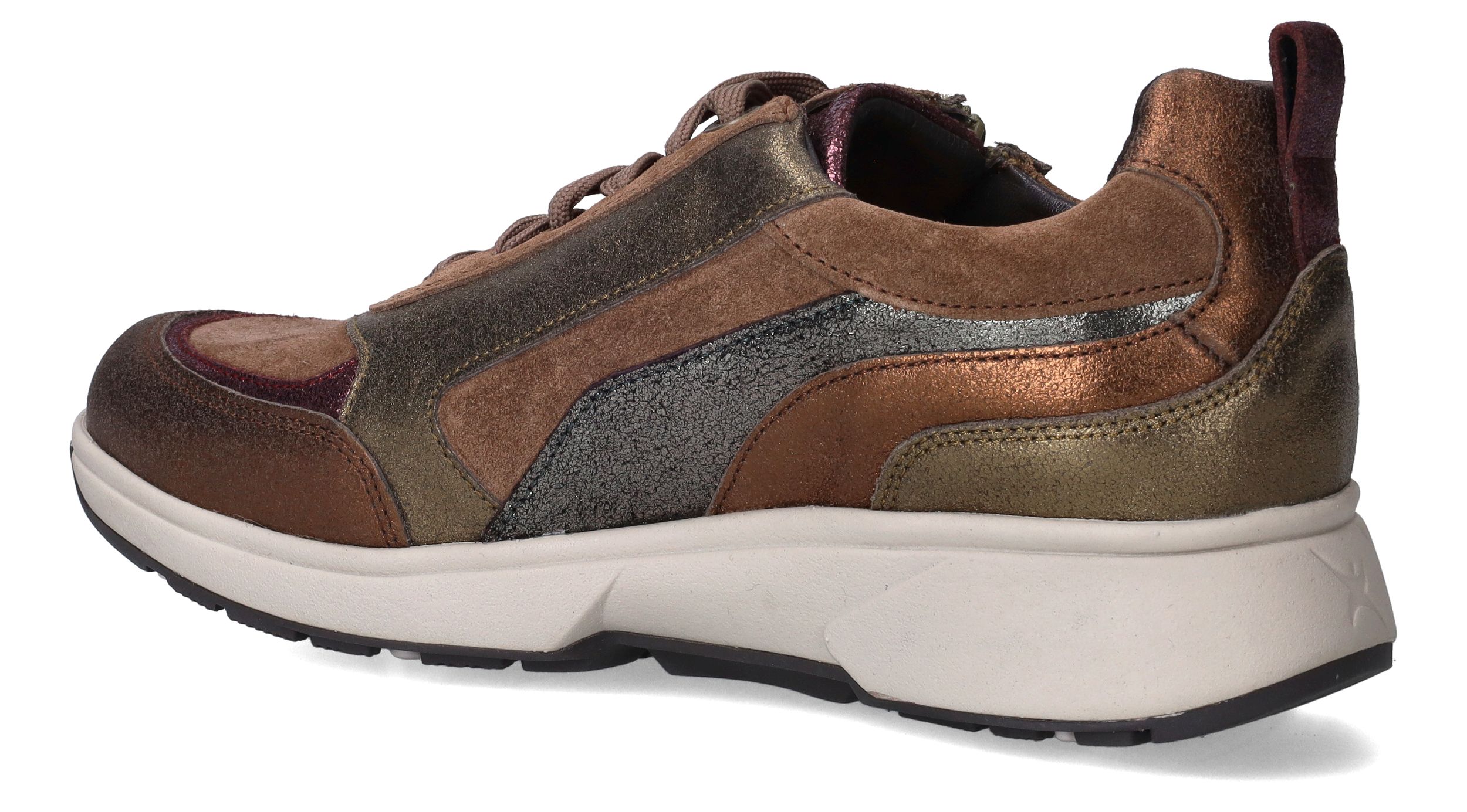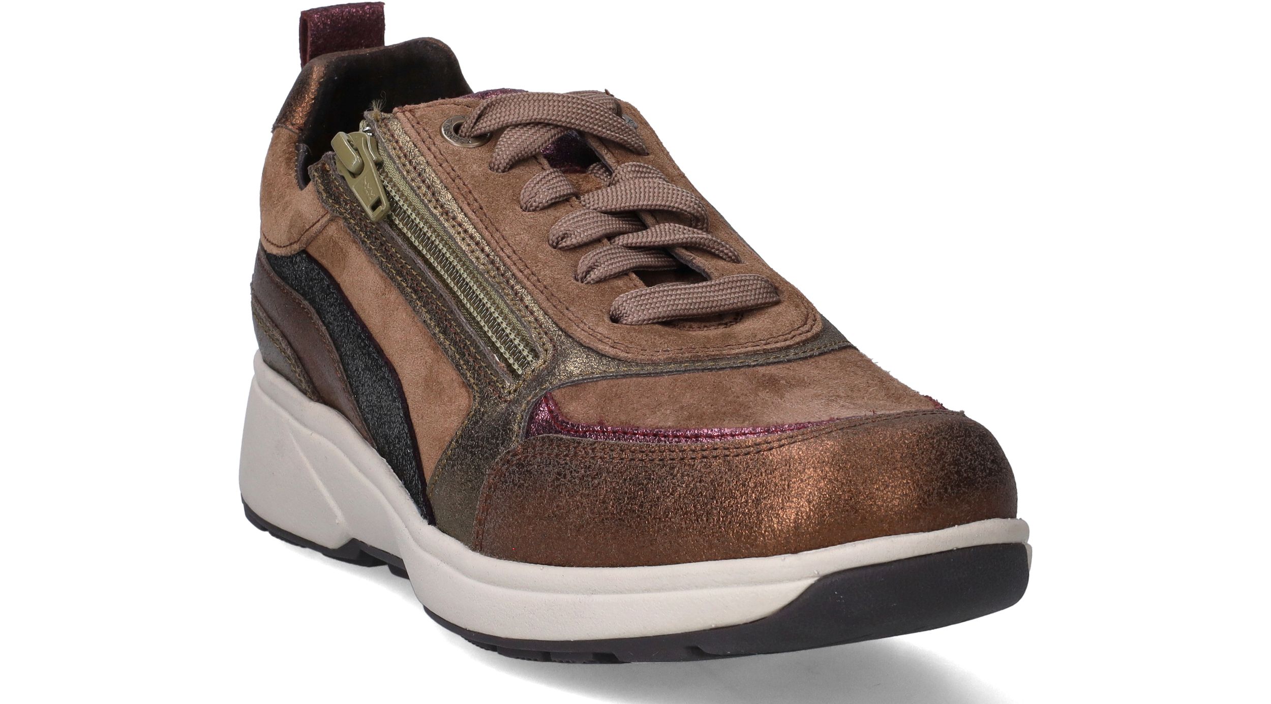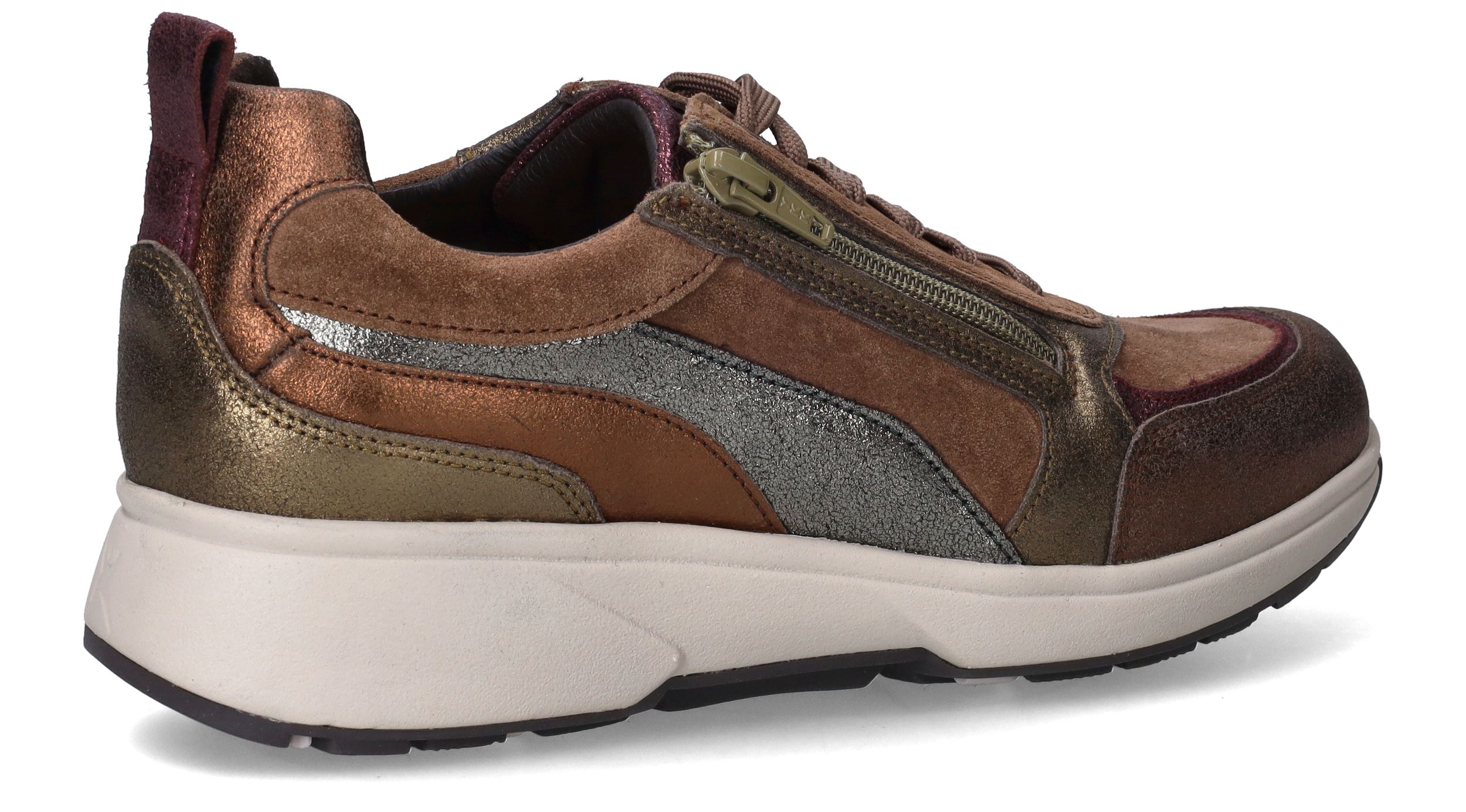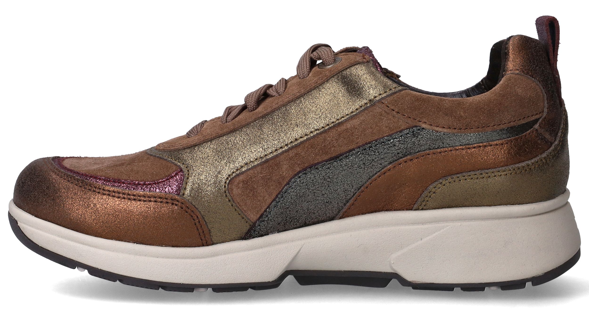 Prachtige, comfortabele Xsensible Valetta sneakers in het bruin met gouden, zilveren en koperen metallic tinten voor dames. Deze sneakers combineren comfort met stijl.
